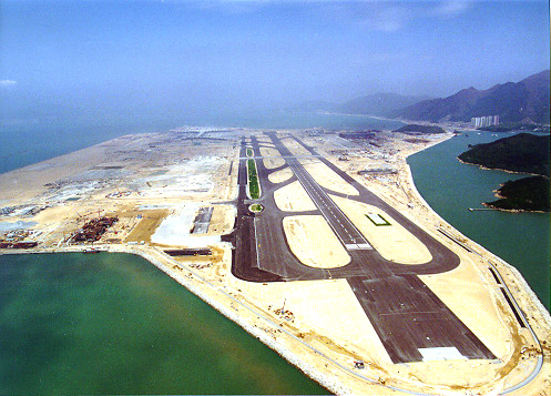 角 的 新 機 場 南 面 跑 道 長 三 點 八 公 里 , 設 計 上 可 讓 新 一 代 巨 型 飛 機 升降