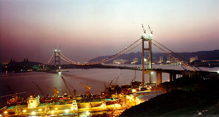 青 馬 大 橋 成 為 香港 的 主 要 新 標 誌 , 圖 中 可 見 其 美 麗 夜 景