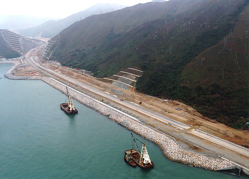 北 大 嶼 山 快 速 公 路 六 線 行 車 , 圖 中 所 見 是 大 蠔 段