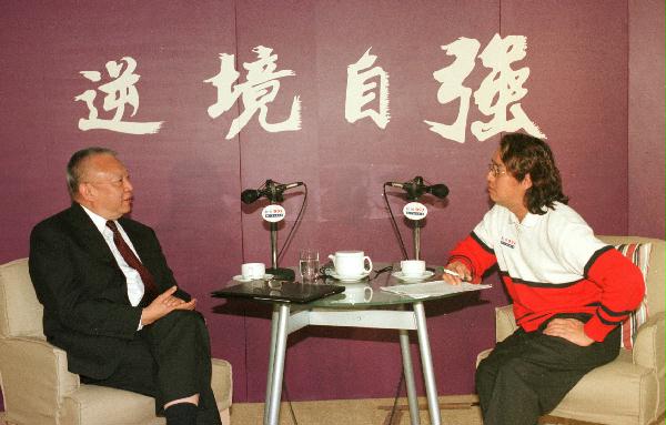 行政長官董建華出席由香港傑出青年協會籌辦的「逆境自強」電台節目,接受演藝界名人譚詠麟的深入訪問。