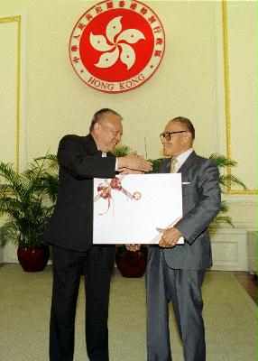 董建華衷心感謝鍾博士對香港工業、醫療和教育方面作出的寶貴貢獻。他強調,鍾博士在促進香港順利過渡方面功不可沒。過去幾年,他在推進籌備委員會和行政會議的工作扮演很重要的角色。