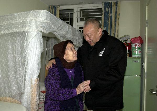 圖片: 行政長官董建華到西灣河康東h探訪一名獨居長者。她對於行政長官在嚴寒中到訪感到高興萬分。 完