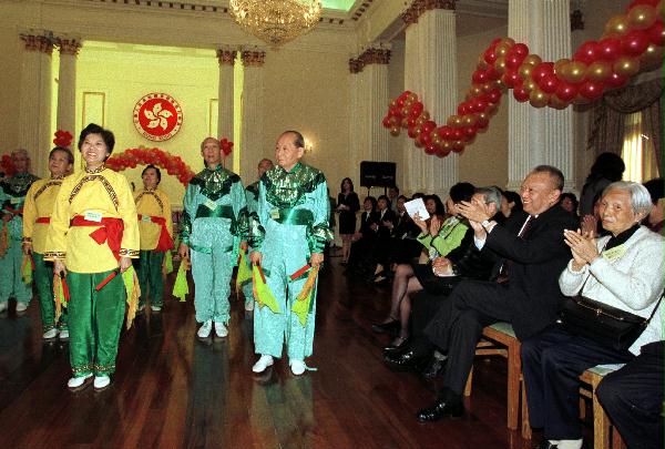 行政長官董建華今日(三月十五日)在香港禮賓府為長者安排了一個聯歡會,出席長者興緻勃勃地參與多項文化藝術及手工藝表演。
