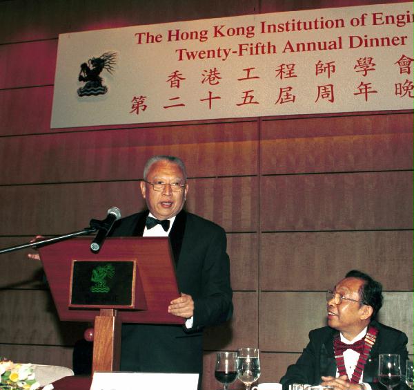 圖片: 圖示行政長官董建華在香港工程師學會二十五周年晚宴上致辭。 完