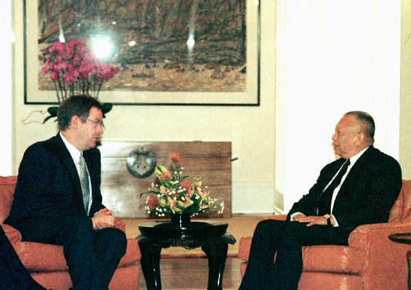 圖片: 行政長官董建華在香港禮賓府設午宴款待到訪的丹麥首相拉斯穆森。 圖示董建華在午宴前與拉斯穆森舉行會議。 完
