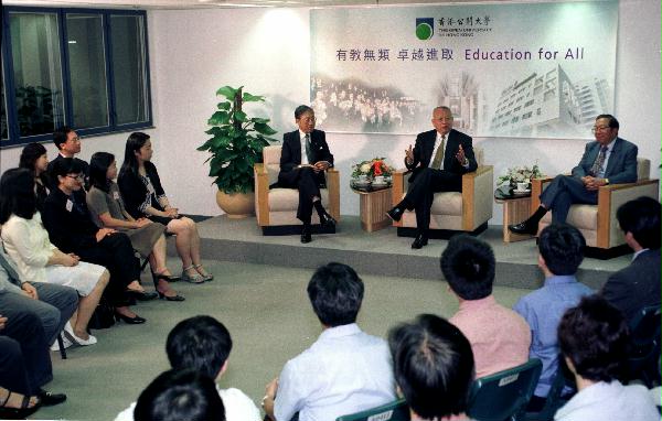董建華分別與教職員會面。校方向他介紹公開大學的最新發展,包括在港島區成立學習中心和預算在未來三年投資九千八百萬元發展資訊科技,推動遙距教育。他又觀看多種課程的教材。