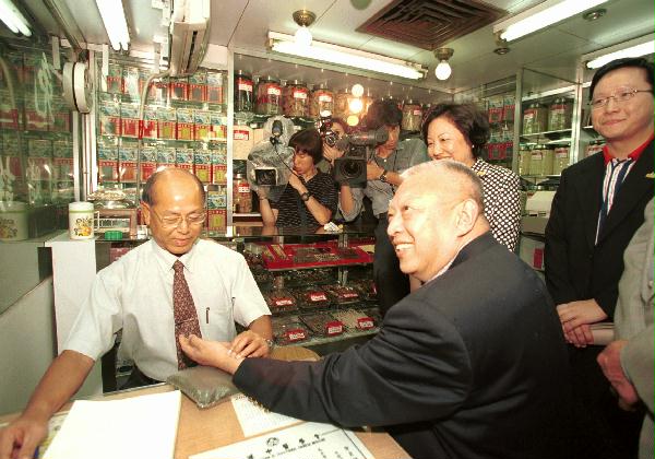 圖片: 圖示家維h商場內一中藥店的中醫師替董建華按脈。 完