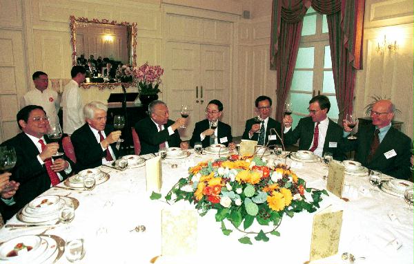 圖片:行政長官董建華在香港禮賓府在港參加第十五屆聯席會議的港美商務委員會成員。 完