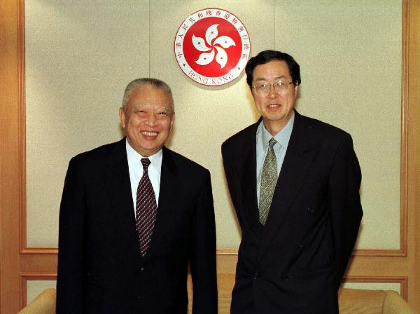 圖片:行政長官董建華在辦公室會見中國證券監督管理委員會主席周小川。兩人同意中港有關機構應在發展兩地證券巿場方面加強合作。