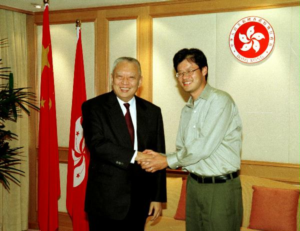 吳基傳向行政長官介紹內地電訊市場的發展。他說香港的人才對本地未來經濟發展和轉型有關鍵性的作用。吳基傳和楊致遠均對香港的發展前景表示信心。 圖片:行政長官董建華今日在其辦公室會見外經貿部部長石廣生。 圖片:行政長官董建華今日在其辦公室會見「雅虎」創辦人楊致遠。 圖片:行政長官董建華今日在其辦公室會見信息產業部部長吳基傳。