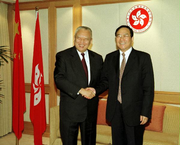 ******************* 行政長官董建華在未來數天會與多位出席《財富》論壇的中央政府部長和環球大型企業的行政總裁、主席,以及董事總經理會面。 第七屆《財富》全球論壇由明日(五月八日)起至五月十日舉行。 行政長官歡迎來自世界各地的重要決策者,他們會在論壇上探討推動世界經濟的種種挑戰和機遇。 董建華今日(五月七日)在辦公室分別與外經貿部部長石廣生和雅虎的楊致遠會面。 董建華向訪客介紹我們的最新經濟情況和香港作為營商和國際融資中心的各種優勢。 行政長官與石廣生就全球未來經濟發展交換意見。他們又討論香港商界和內地企業合作開拓國際市場的前景。 行政長官得悉中國加入世界貿易組織的進展非常良好。行政長官與石廣生均認同中國加入世貿組織將為香港和國際商界帶來龐大商業機會。 行政長官說:「我希望中國能早日完成加入世貿組織的程序。」石廣生則祝願香港繼續繁榮發展。