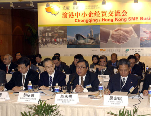 〝渝港中小企交流會〞是重慶•香港周活動四項專題研討會之一,「香港中小型企業交流團」三十九名成員和重慶市約一百五十多位來自工商企業、商會及政府的代表,共同討論在中國加入世界貿易組織後和在西部大開發之中,渝港兩地如何加強經貿合作。