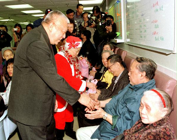 行政長官董建華今日(十二月二十四日)參觀聖雅各福群會在灣仔總部大樓提供的社會服務,並出席為長者而設的聖誕聯歡會。