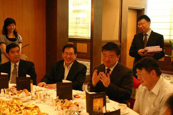 The Secretary for Food and Health, Dr York Chow (second left), has breakfast with the Minister of Health, Mr Chen Zhu (second right), in Beijing this morning (August 31).