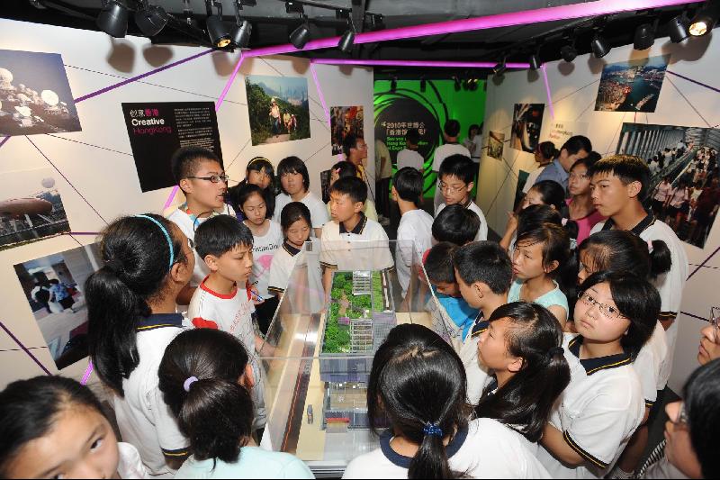 Shanghai students are attracted by the model of the Hong Kong Pavilion, one of the highlights at the exhibition on Hong Kong's participation in Expo 2010.