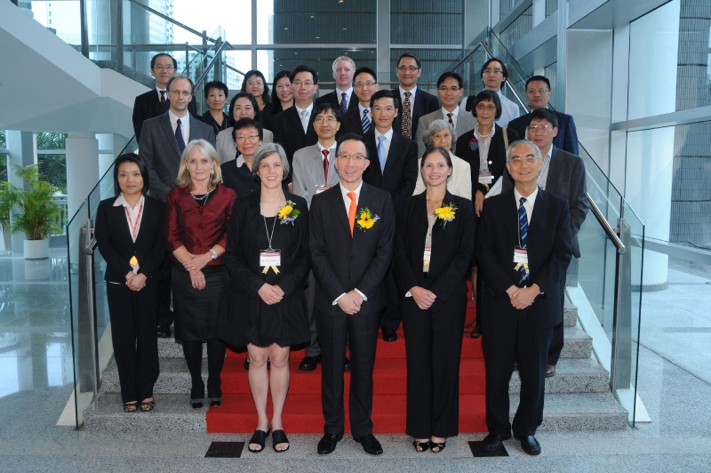 The Under Secretary for Food and Health, Professor Gabriel Leung (third right, front row), took a picture with the award winners and guests after the award presentation ceremony of the Health Research Symposium 2010 today (September 11).