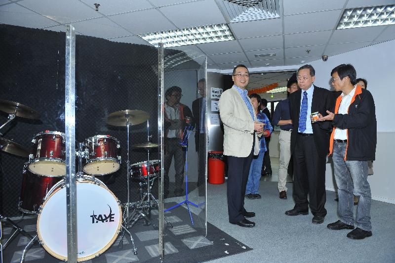 黎棟國(右二)參觀香港青年協會荃灣青年空間的設施。