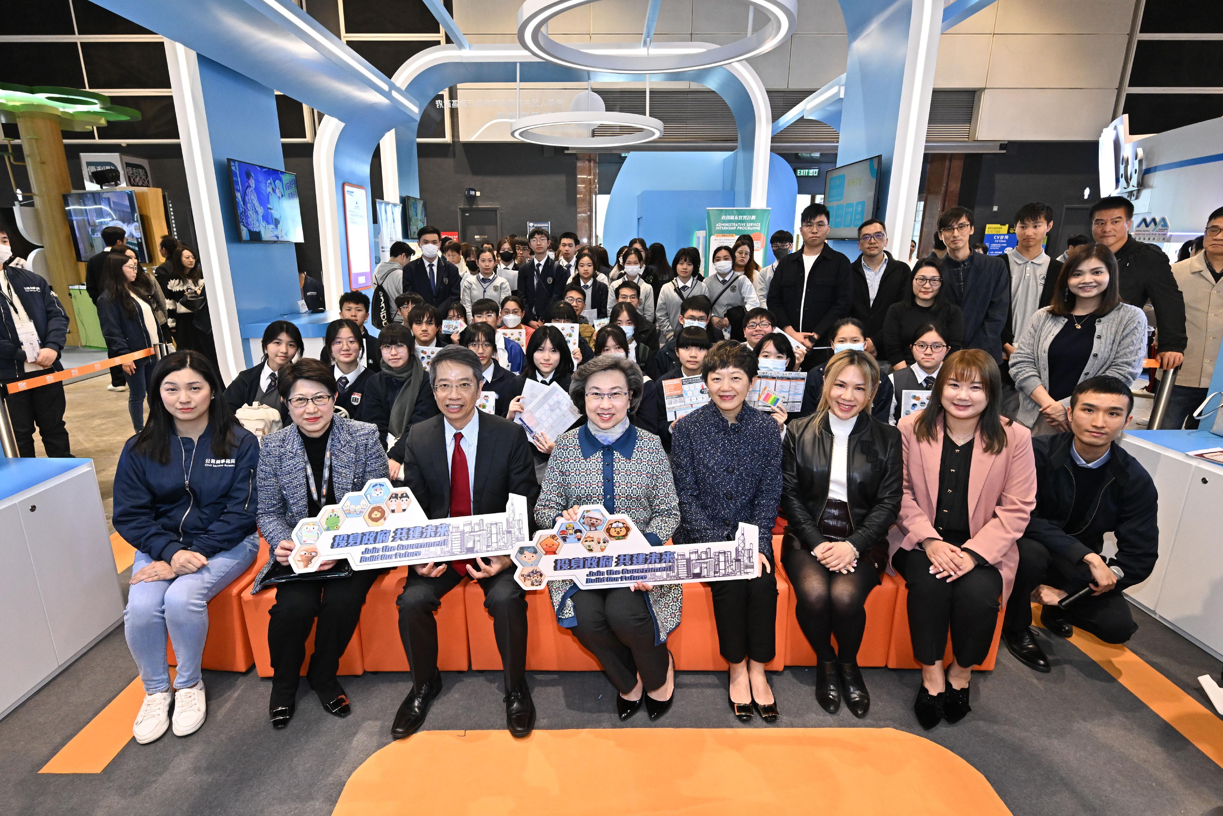 公務員事務局局長楊何蓓茵及公務員事務局常任秘書長梁卓文今日一同參觀博覽內政府多個部門設立的攤位,並與參觀的學生傾談,了解他們的志趣及求職意向,並鼓勵年青人積極投身公共服務。