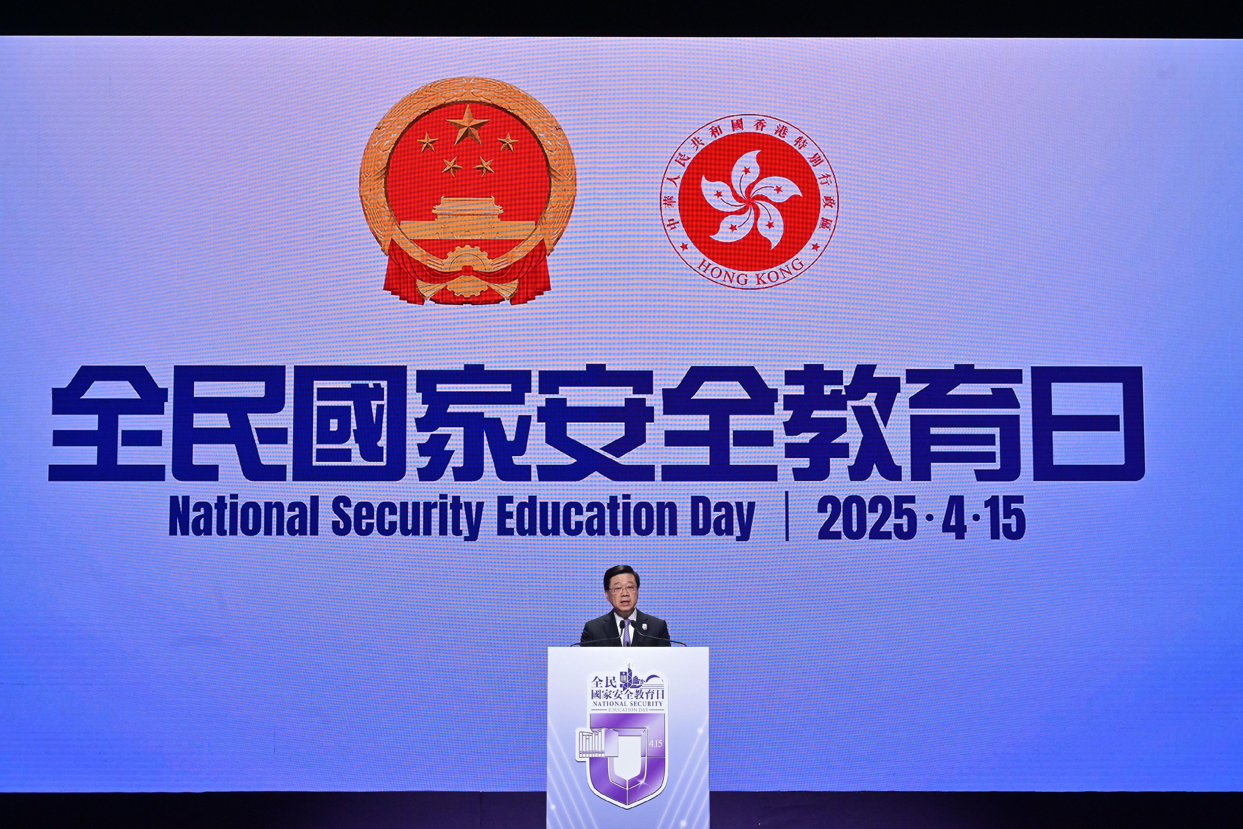 Launched today (April 15) at the Hong Kong Convention and Exhibition Centre, the National Security Education Day activities were hosted by the Committee for Safeguarding National Security of the Hong Kong Special Administrative Region (the Hong Kong National Security Committee) and supported by the Liaison Office of the Central People's Government in the Hong Kong Special Administrative Region (LOCPG) and the Office for Safeguarding National Security of the Central People's Government in the Hong Kong Special Administrative Region (OSNS). The Director of the Hong Kong and Macao Work Office of the Communist Party of China Central Committee and the Hong Kong and Macao Affairs Office of the State Council Mr Xia Baolong officiated at the opening ceremony of the National Security Education Day via video. Officiating guests attending the opening ceremony were the Chief Executive of the Hong Kong Special Administrative Region (HKSAR) and the Chairman of the Hong Kong National Security Committee, Mr John Lee; Director of LOCPG and National Security Advisor of the Hong Kong National Security Committee, Mr Zheng Yanxiong; Head of OSNS, Mr Dong Jingwei; Commissioner of the Ministry of Foreign Affairs of the People's Republic of China in the HKSAR, Mr Cui Jianchun; and Political Commissar of the Chinese People's Liberation Army Hong Kong Garrison, Navy Rear Admiral Lai Ruxin.