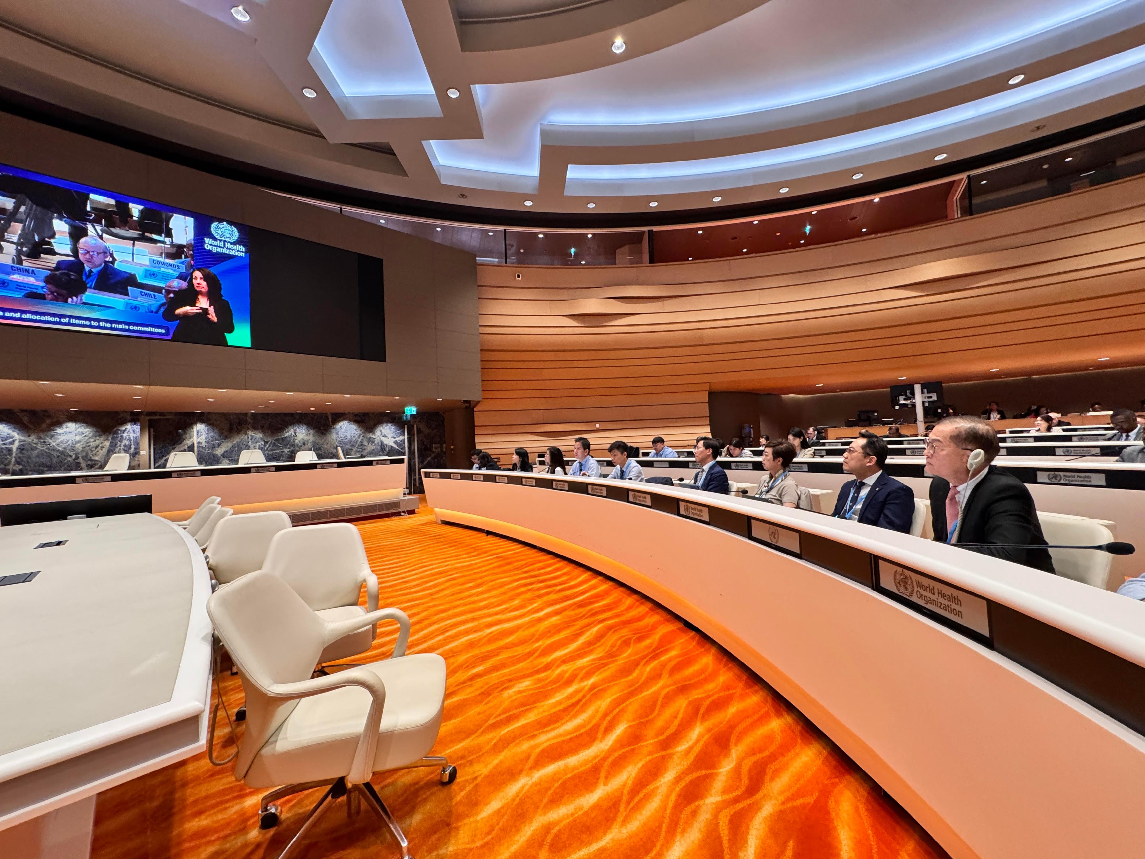 Professor Lo and the Director of Health, Dr Ronald Lam, attended the Assembly as members of the Chinese delegation. The theme of this year's Assembly is "One World for Health", and the discussions cover a wide range of issues, including universal health coverage, prevention and control of non-communicable diseases, antimicrobial resistance, health emergency preparedness and response, mental health and social connection, standardisation of medical devices nomenclature and the International Health Regulations. The Minister of the National Health Commission (NHC), Mr Lei Haichao, delivered a speech about healthcare developments of the Mainland at the plenary session.
