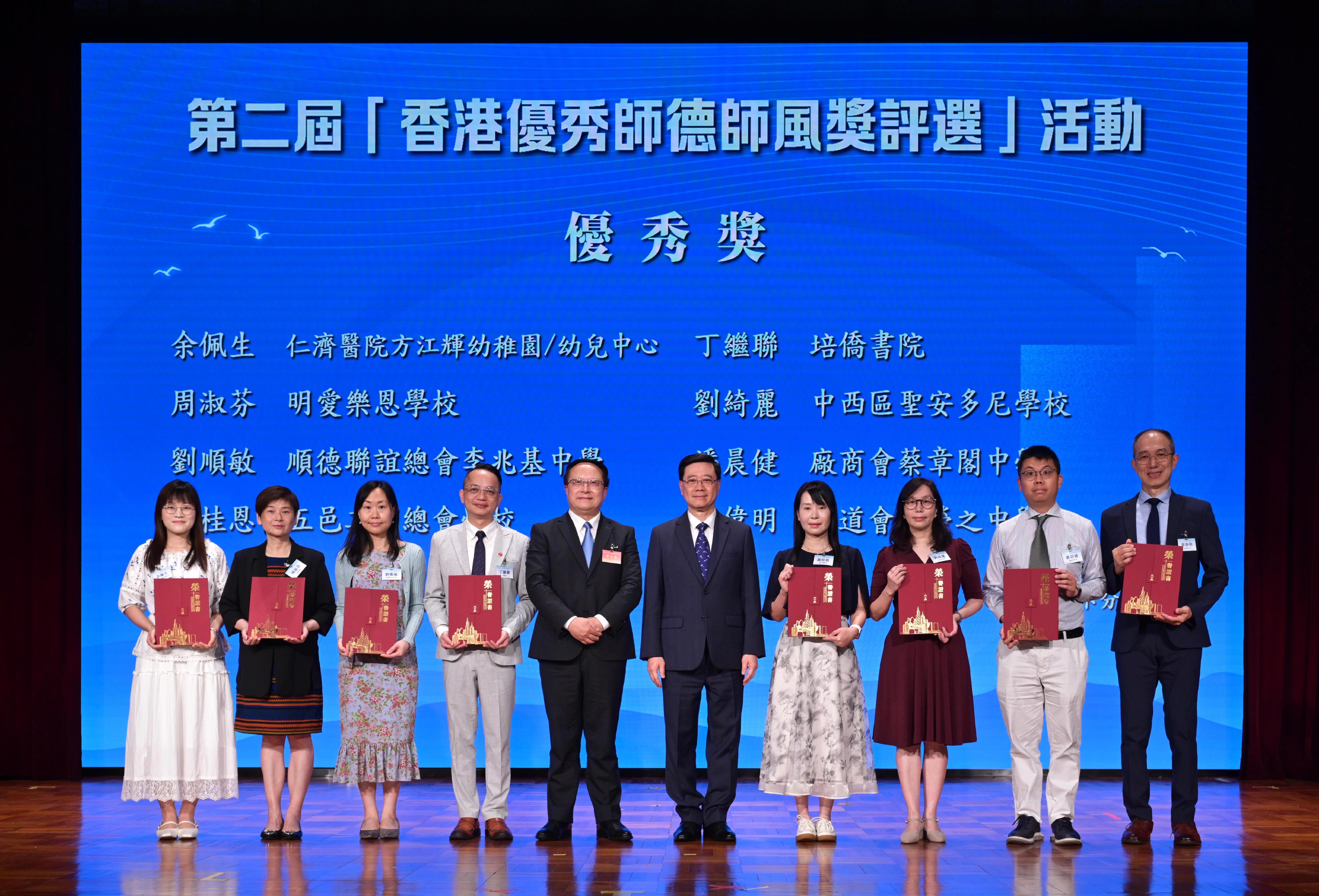 育有德之人,需有德之師。各位獲獎的老師默默耕耘,在課堂內外實踐為人師表的使命。我鼓勵你們通過不同渠道向教育界同儕和社會各界分享自己教育專業的信念,以及以生命影響生命的育人故事,感召更多師德優秀、愛國愛港的教育工作者,一同提升師德師風,共同說好香港教育故事。