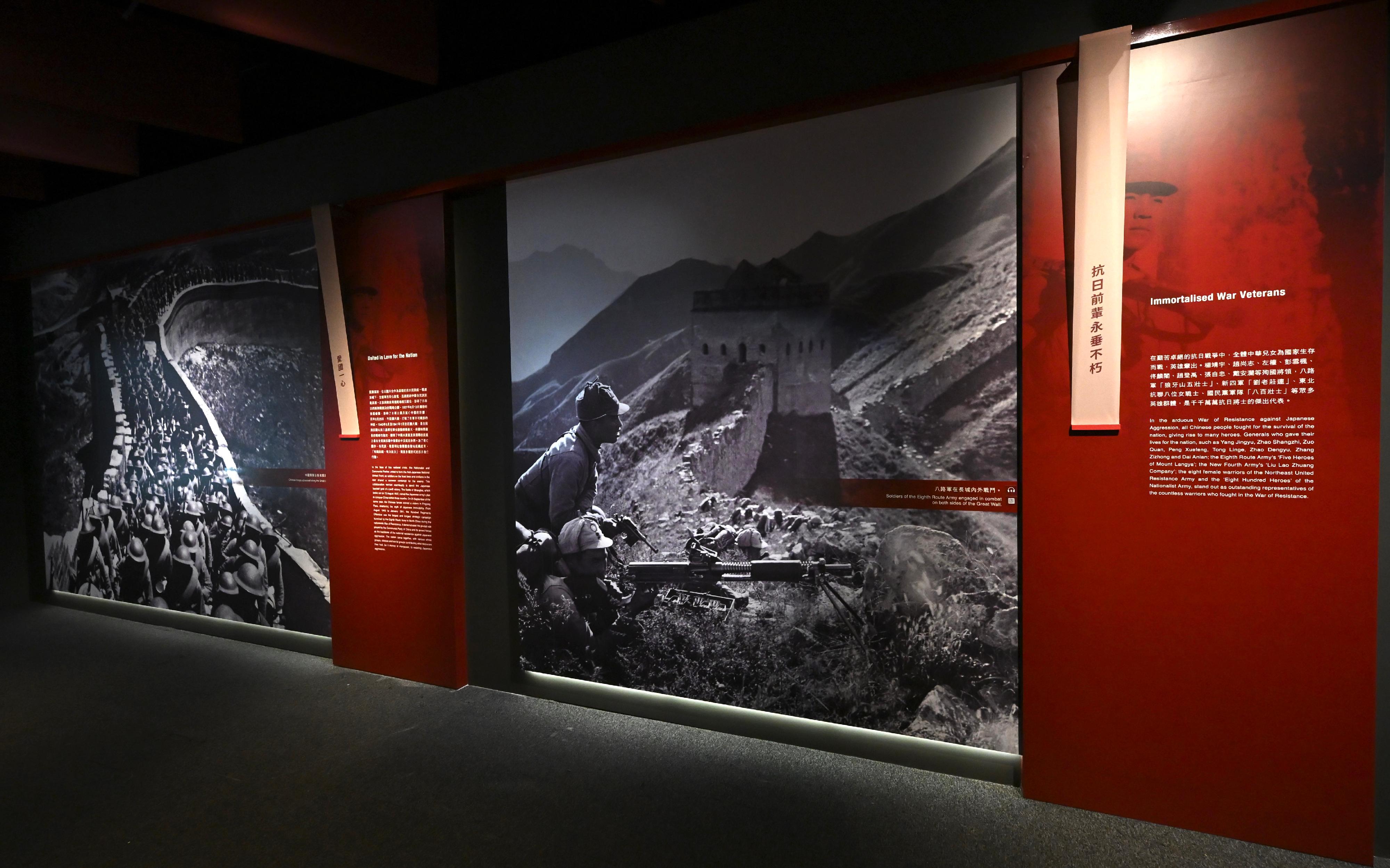 展覽亦重構一九三七年七七事變的盧溝橋和香港淪陷時期拘留營的場景,並以多媒體展示中國著名畫家葉淺予筆下的《香港受難圖》漫畫,記錄了日軍侵佔香港的暴行及香港人民所承受的苦難。另設有20多個包括錄像在內的互動節目,呈現抗戰時期與香港相關的重要歷史人物與事件,以及抗戰勝利的歷史原音講話。