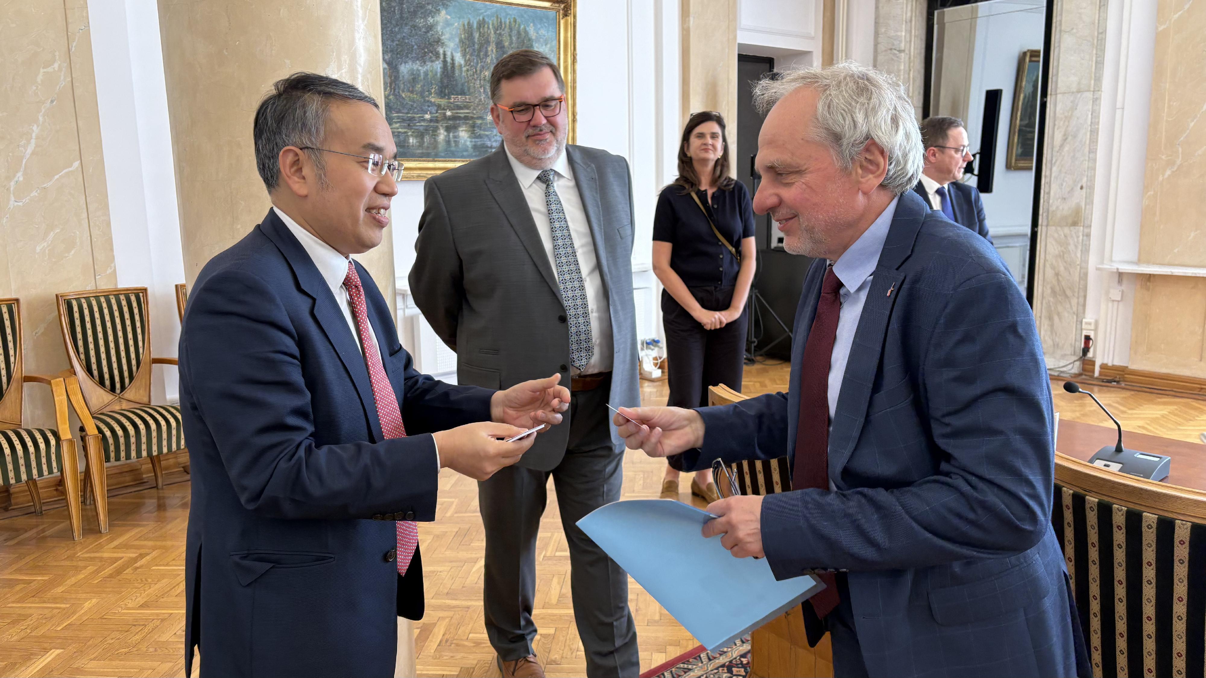 同日,許正宇也拜訪了中國駐波蘭大使館公使參贊李丹鴻,向她介紹香港金融環境的最新狀況。