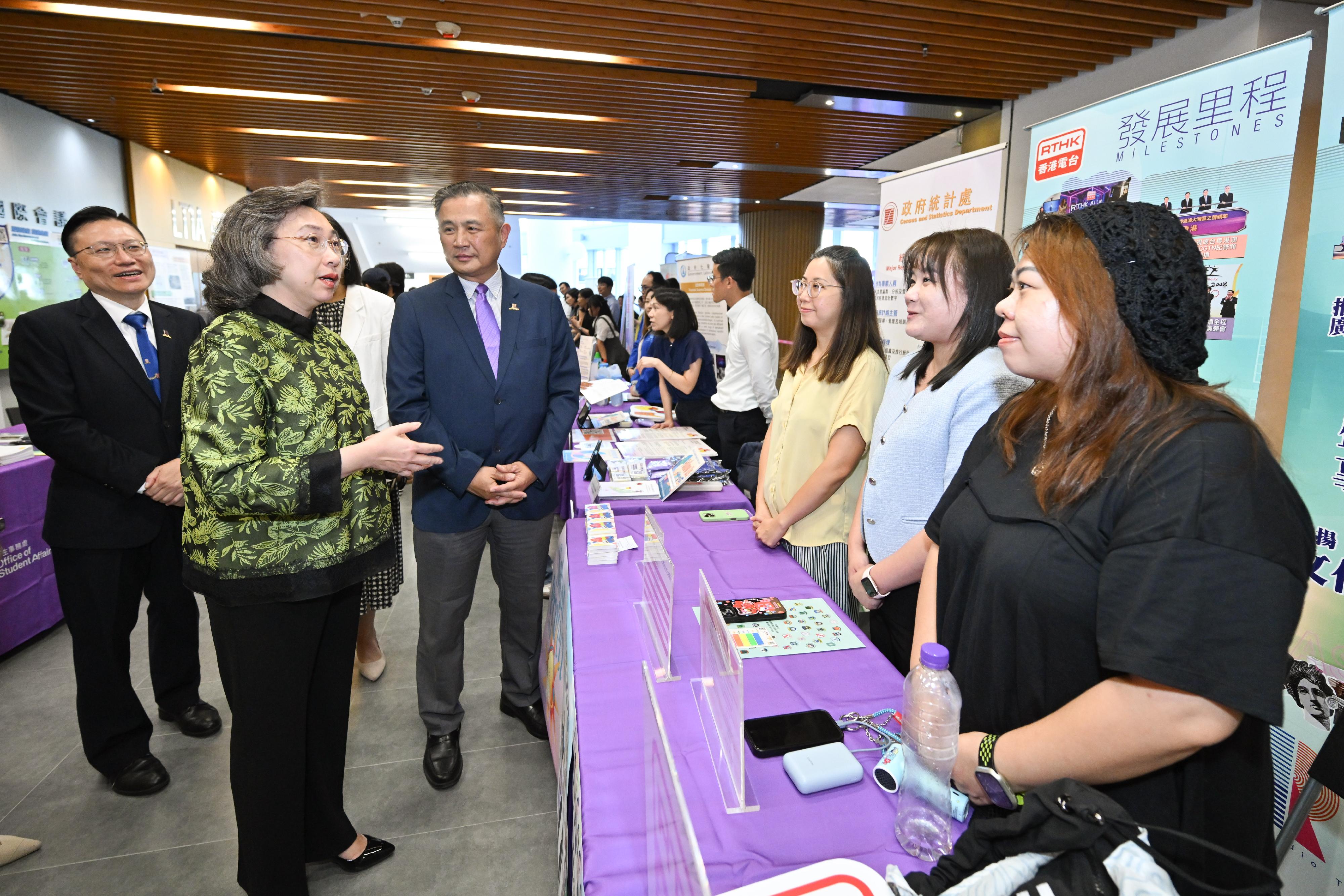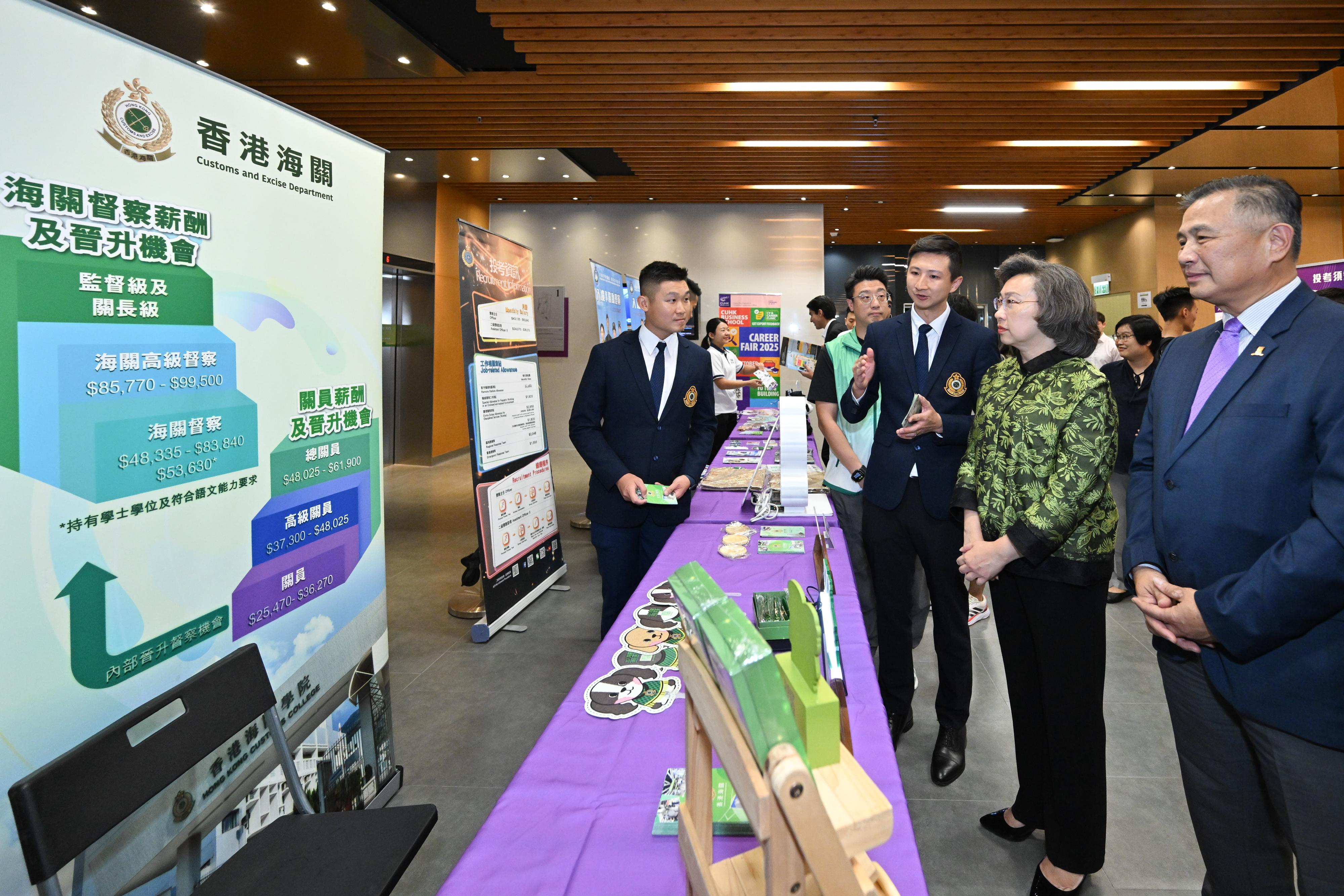 This is the third year that the CSB has co-organised the fair with the CUHK to provide university students with practical, one-stop recruitment information. Students can also ask questions to serving civil servants from various grades on the spot. Mrs Yeung said, "When I chatted with visiting students, some mentioned that they only realised the wide range of employment opportunities the Government offers young people after visiting the fair. They learned that there are diverse options including jobs requiring generalists and some others demanding specialists, and positions in the disciplined services. The fair deepened their understanding of the work, requirements, and career progression pathways of the departments. It's a win-win-win situation for the Government, students, and the university."