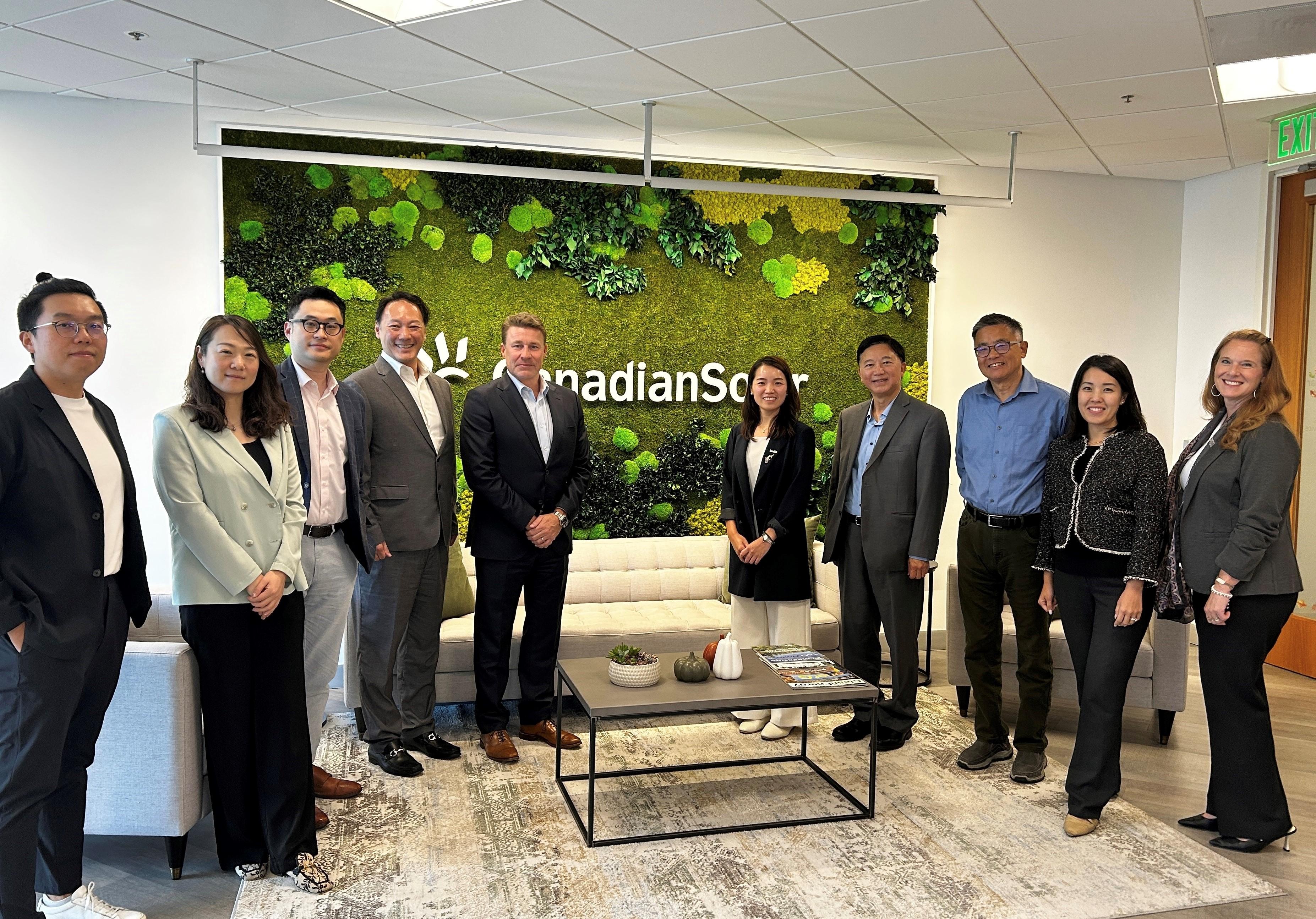 Besides inbound investment promotion, InvestHK also has a strategic mandate in supporting companies with a presence in Hong Kong to "go global". InvestHK visited CSI Solar, one of the world's largest solar technology and renewable energy companies with a presence in 23 countries that is expanding its operations in Hong Kong. During the visit, the team met with senior management from CSI Solar, as well as its subsidiaries EternalPlanet Energy and e-STORAGE.