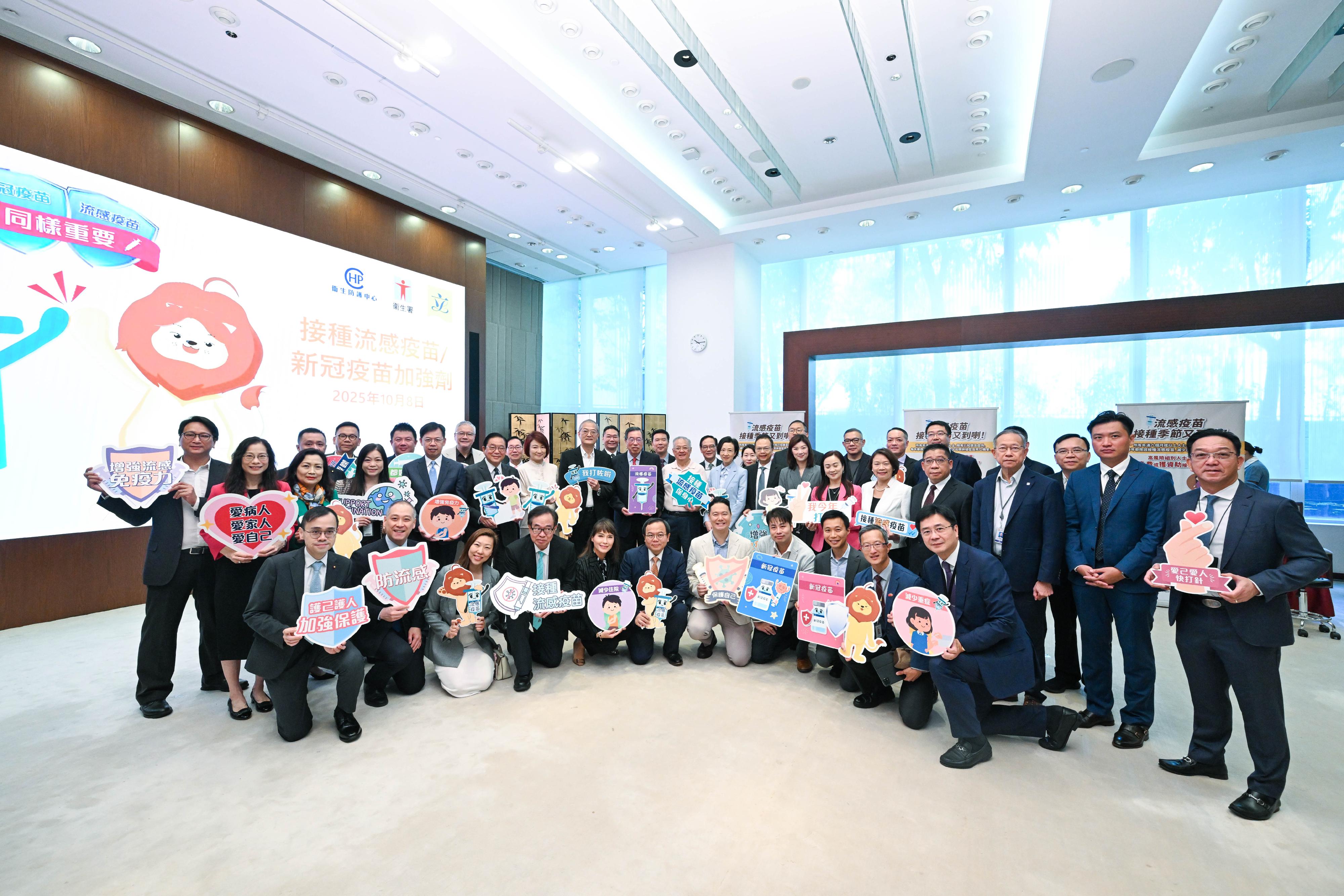 我亦很開心在此向大家報告,由九月二十二日展開疫苗接種計劃起,截至現時的最新數字,我們已經在首兩星期內共接種約33萬劑流感疫苗。大家記得去年的數字創新高,較之前增加11.7%。而今年度直至現在為止,首兩星期共接種約33萬劑流感疫苗,較去年同期再上升9.4%。我希望這個勢頭可以繼續,而我亦希望今日這個活動可以讓立法會議員幫助我們一同向大家展示接種流感疫苗其實很安全,沒有甚麼副作用,亦可以真正保護大家的健康。行政長官和一眾政府官員其實前一、兩星期已經接種了疫苗,希望議員今日接種後,市民都會積極參與。要記得︰「一年打一次,宜早不宜遲,十月最合時」。謝謝大家!