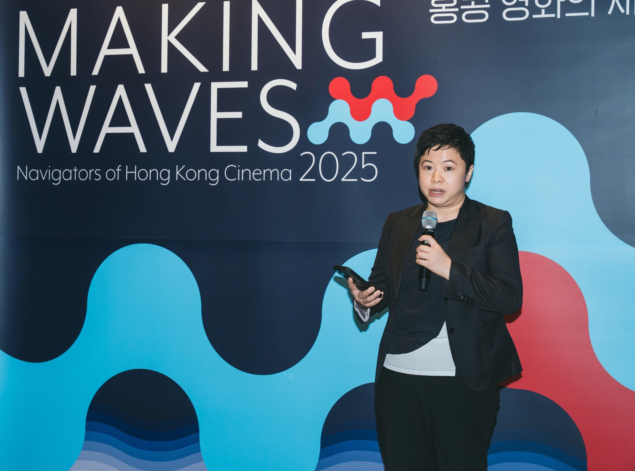 Speaking at the opening reception on October 17, the Commissioner for Cultural and Creative Industries, Miss Drew Lai, expressed her gratitude to the Korean film industry and audiences for their support of Hong Kong film. She said, "Film is a universal language that plays a vital role in strengthening cultural exchanges. In the past few years, the Hong Kong Special Administrative Region Government has supported the screening of Hong Kong films in Korea for several times. "Montages of a Modern Motherhood" and "Measure in Love" (funded by the Film Development Fund (FDF)) were selected for the Busan International Film Festival last year and this year respectively. We are delighted to see that Hong Kong films are gaining increasing recognition at film festivals in Korea and beyond." Miss Lai added that the films selected for Making Waves combine the old and new with multiple themes from Hong Kong cinema, showcasing the captivating cityscapes and rich and nuanced culture of Hong Kong. She hoped that the film choices will resonate deeply with audiences.