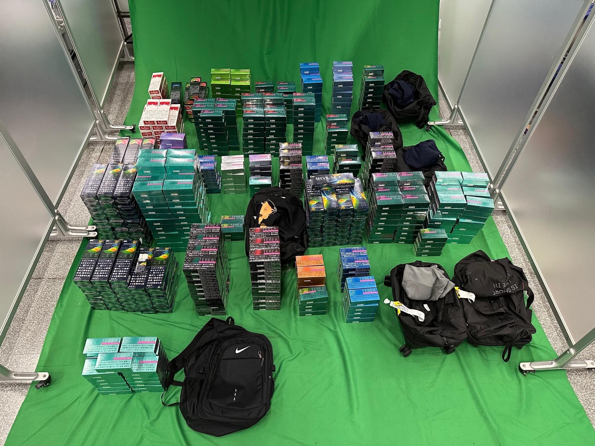 另外,海關人員八月二十五日在香港國際機場截查一名三十七歲的抵港男旅客,並在他的個人行李內共檢獲約三萬三千支未完稅香煙及約十四萬件另類吸煙產品,市值共約五十七萬三千元,應課稅值共約十一萬一千元。他隨即被捕,並於今日在西九龍裁判法院就違反《應課稅品條例》及《進出口條例》,被判處監禁十個月和罰款一千元。