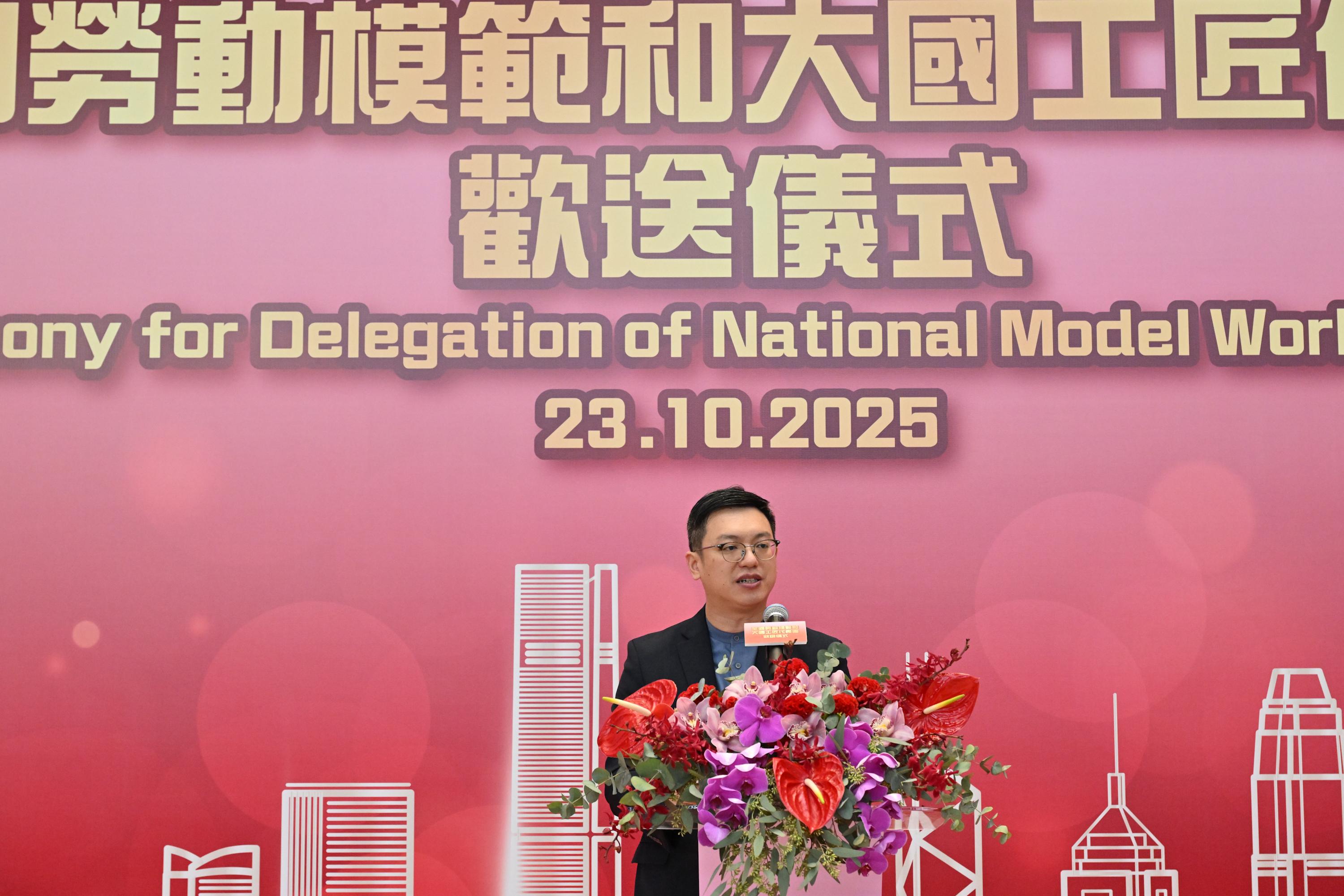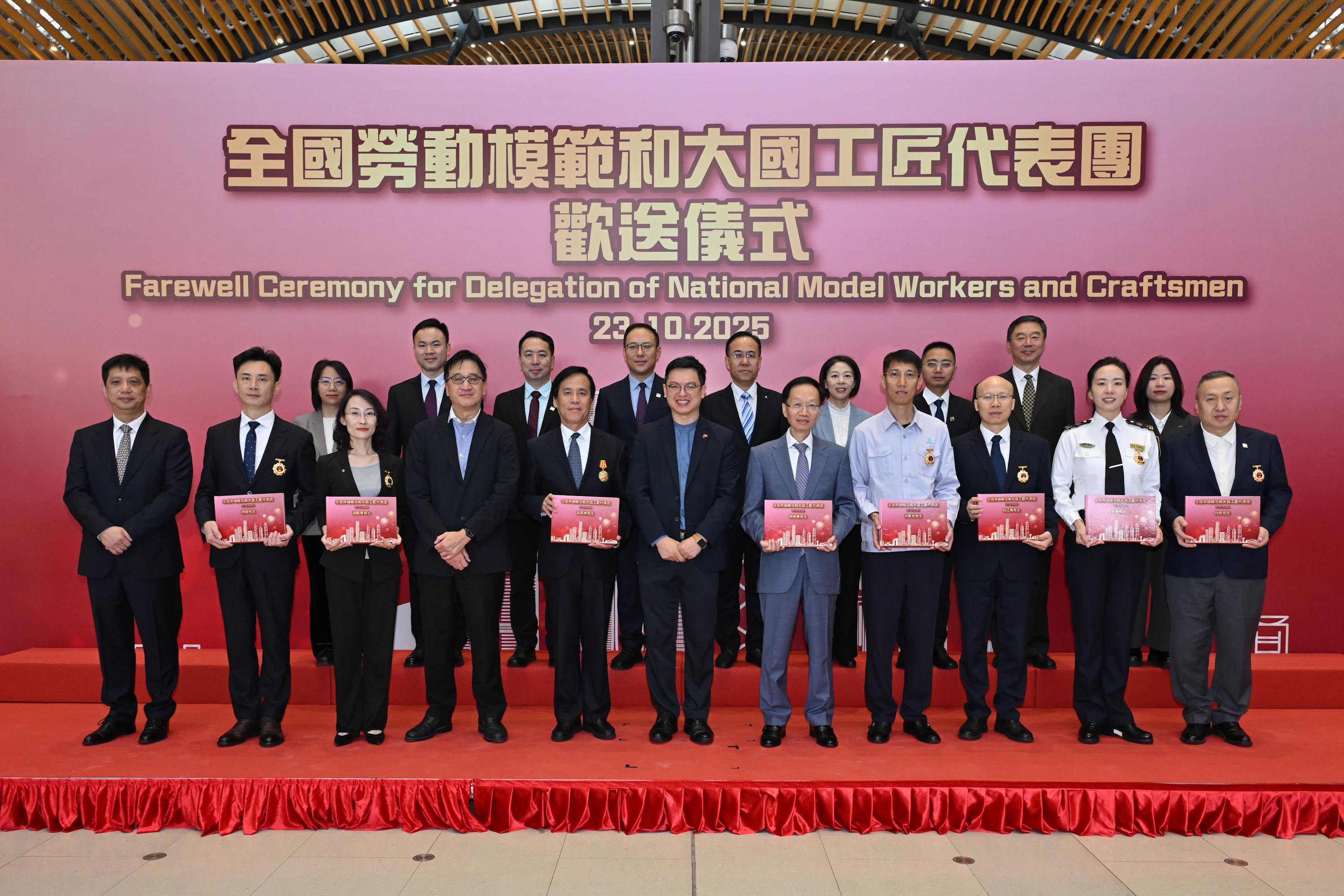 勞工及福利局副局長何啟明在歡送儀式上衷心感謝代表團訪港,讓香港市民親身感受全國勞動模範、全國先進工作者和大國工匠在各自領域中展現的卓越貢獻和崇高精神,進一步體會工匠精神的深刻內涵。他表示,代表團成員的專業素養、豐富經驗以及對工作的熱忱,為香港市民,尤其是年輕一代,帶來深刻的啟迪與鼓舞。