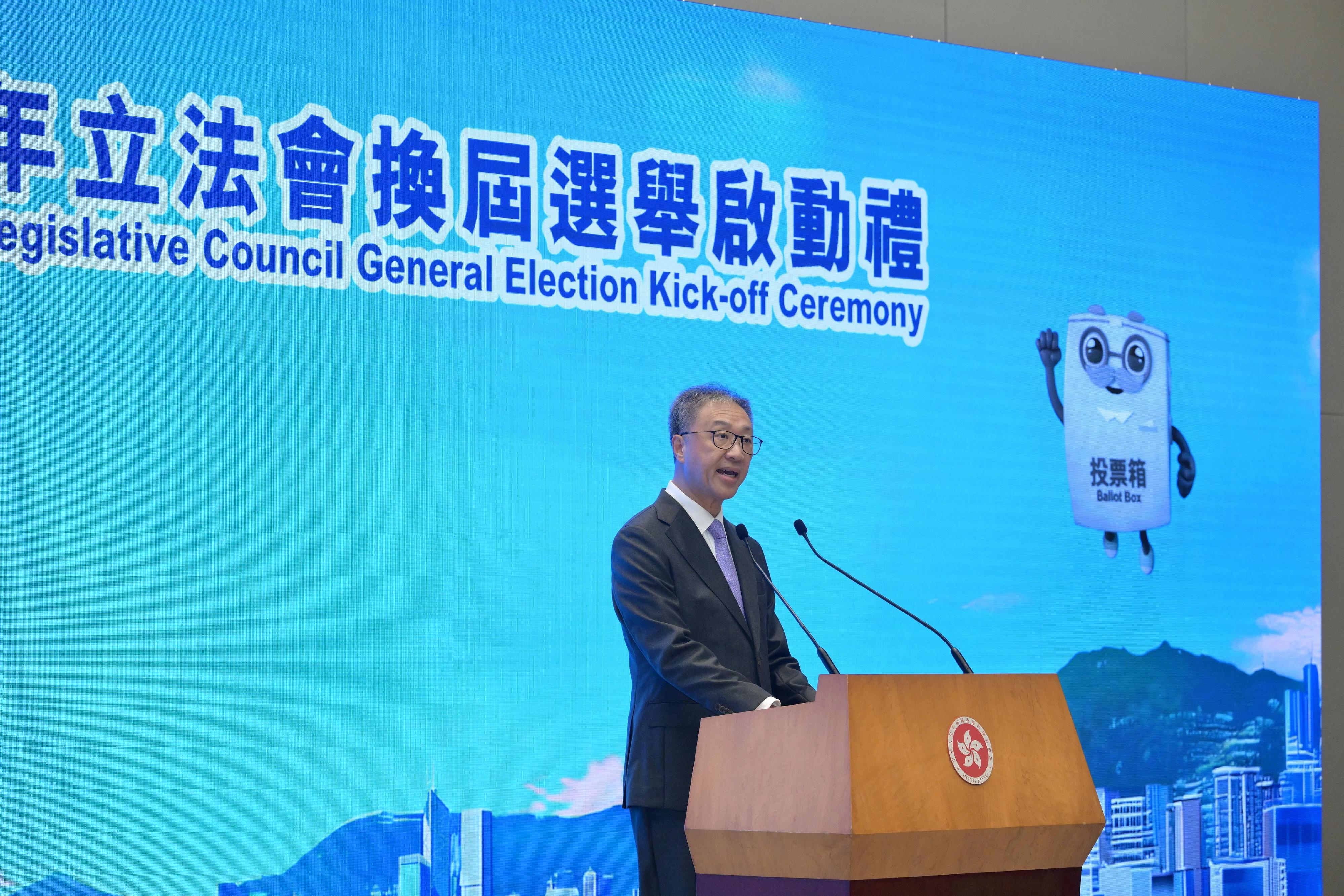 歡迎大家出席今日二○二五年立法會換屆選舉啟動禮。大家都知道,今年的第八屆立法會選舉將於本年十二月七日舉行。提名期將在明日十月二十四日開始,至十一月六日截止。隨着選舉提名期的展開,今次立法會換屆選舉亦正式拉開序幕。