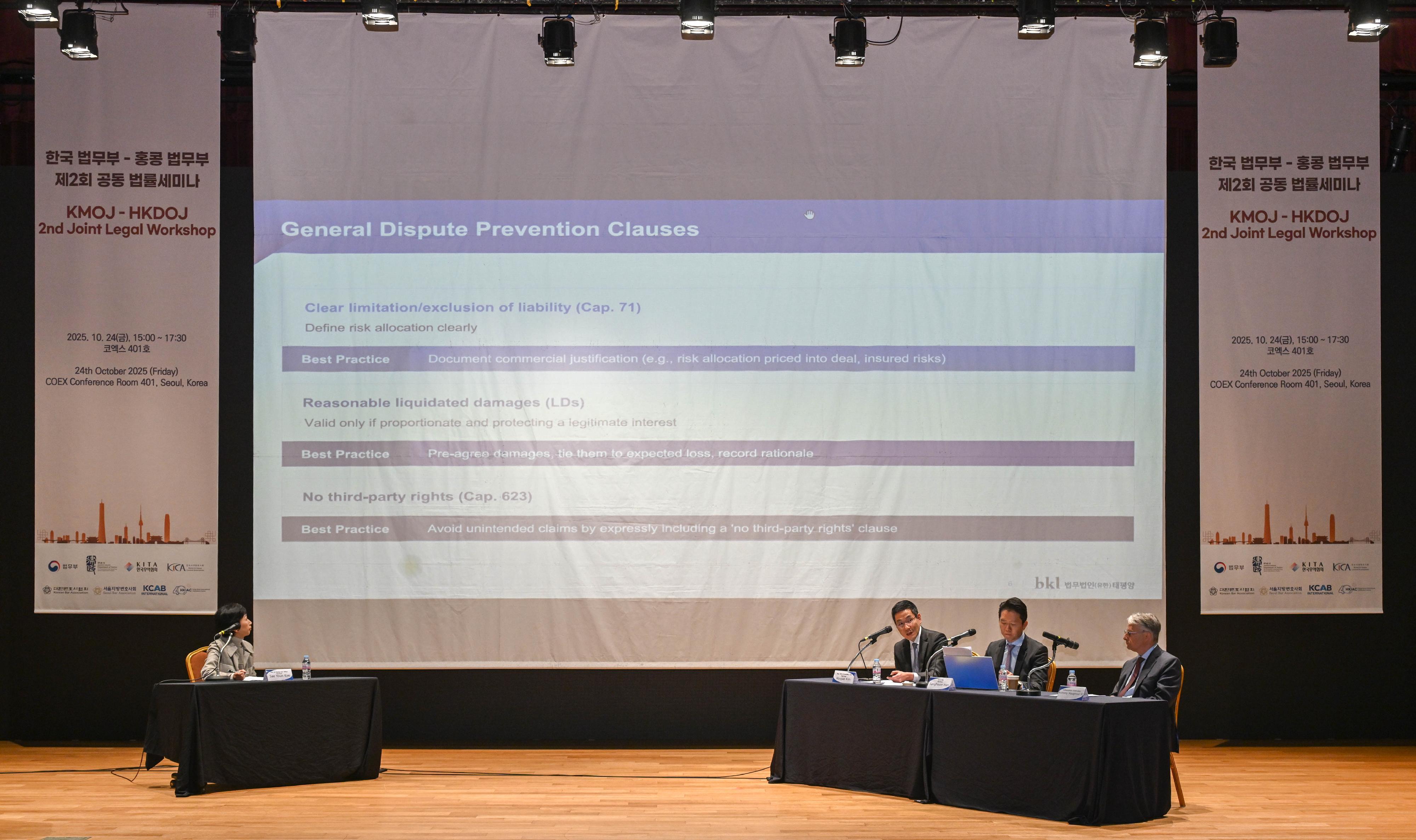 其後,林定國與韓國法務部國際法律事務部副部長鄭洪式共進晚餐,就兩地的法律合作機會,以及法律和解決爭議服務最新發展交換意見。