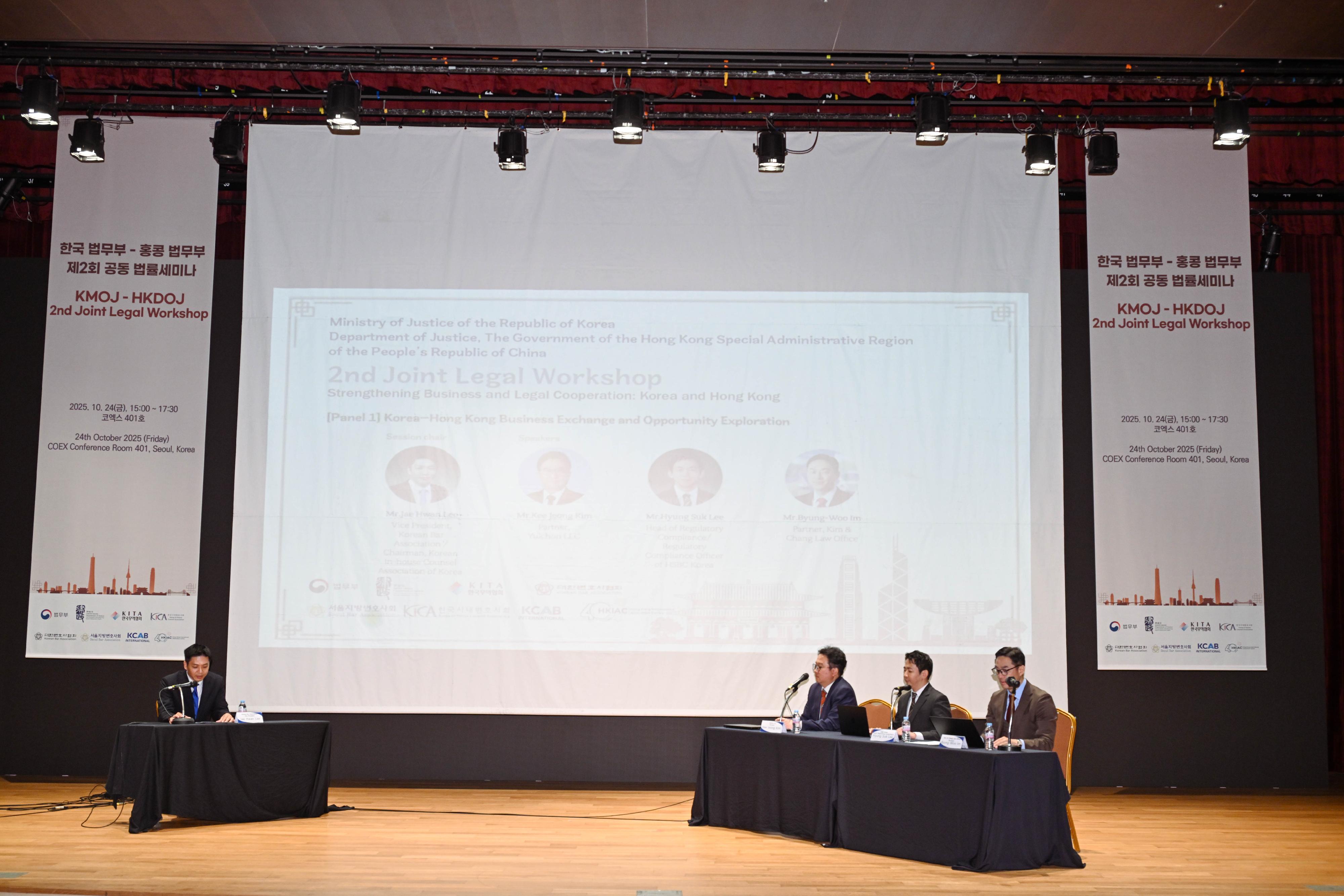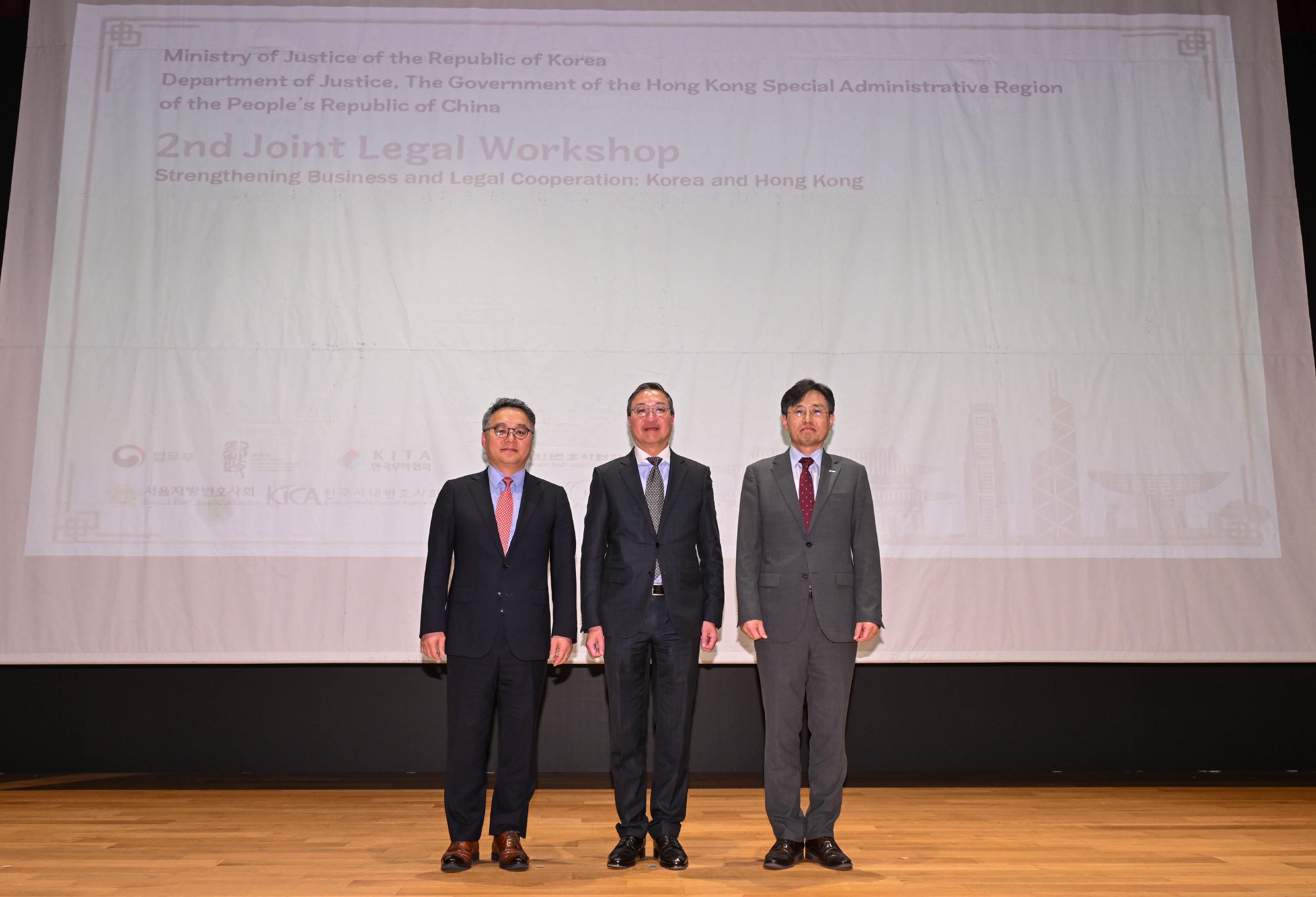 In the afternoon, Mr Lam attended a joint legal workshop co-organised by the Department of Justice (DoJ) and the Ministry of Justice of the Republic of Korea on "Strengthening Business and Legal Cooperation: Korea and Hong Kong". The workshop attracted about 100 participants. Mr Lam said in his opening remarks that Hong Kong, as the only bilingual common law jurisdiction in the world using both English and Chinese, is home to a large pool of lawyers with extensive international experience, and maintains a close connection with the legal system in the Chinese Mainland. As the centre for international legal and dispute resolution in the Asia-Pacific region, Hong Kong provides fair and efficient dispute resolution services that facilitate enterprises to expand investment and business opportunities in China. Looking forward, he said he expected the DoJ will continue building on a strong foundation of partnership with Korea.