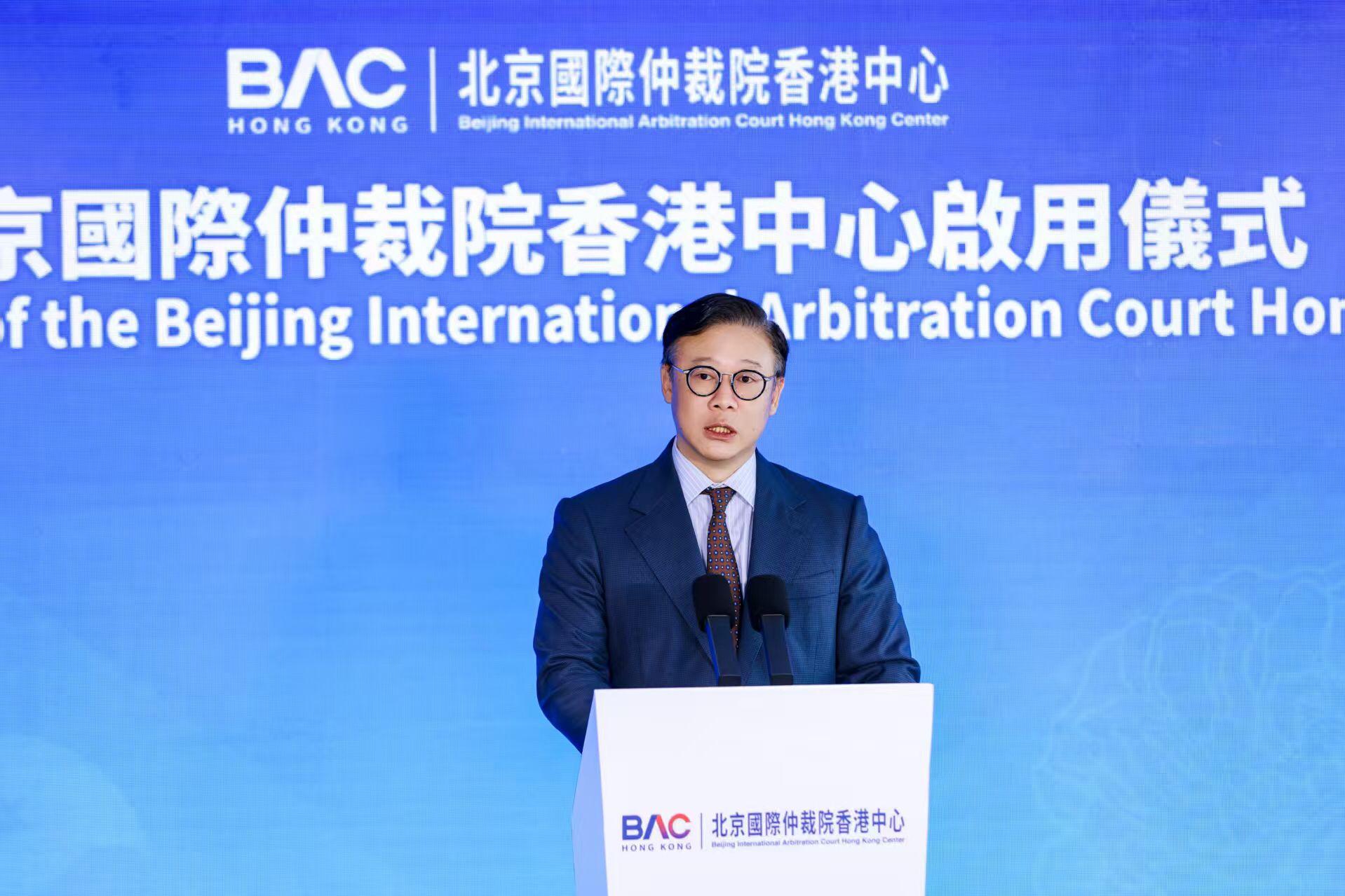律政司一直歡迎國際及區內外的仲裁機構來港設立辦事處。北京國際仲裁院是國內享負盛名的仲裁機構,在受案量和受案金額等方面均處於國內領先之列。北京國際仲裁院現適逢成立30周年之際選址於香港設立首個境外分支機構,不僅充分體現了對香港仲裁制度的信賴和支持,亦是助力國家加強涉外法治建設、健全國際商事仲裁機制和推動高水平對外開放的重要舉措,意義非凡。我想藉此向北京國際仲裁院落戶香港表示熱烈祝賀。