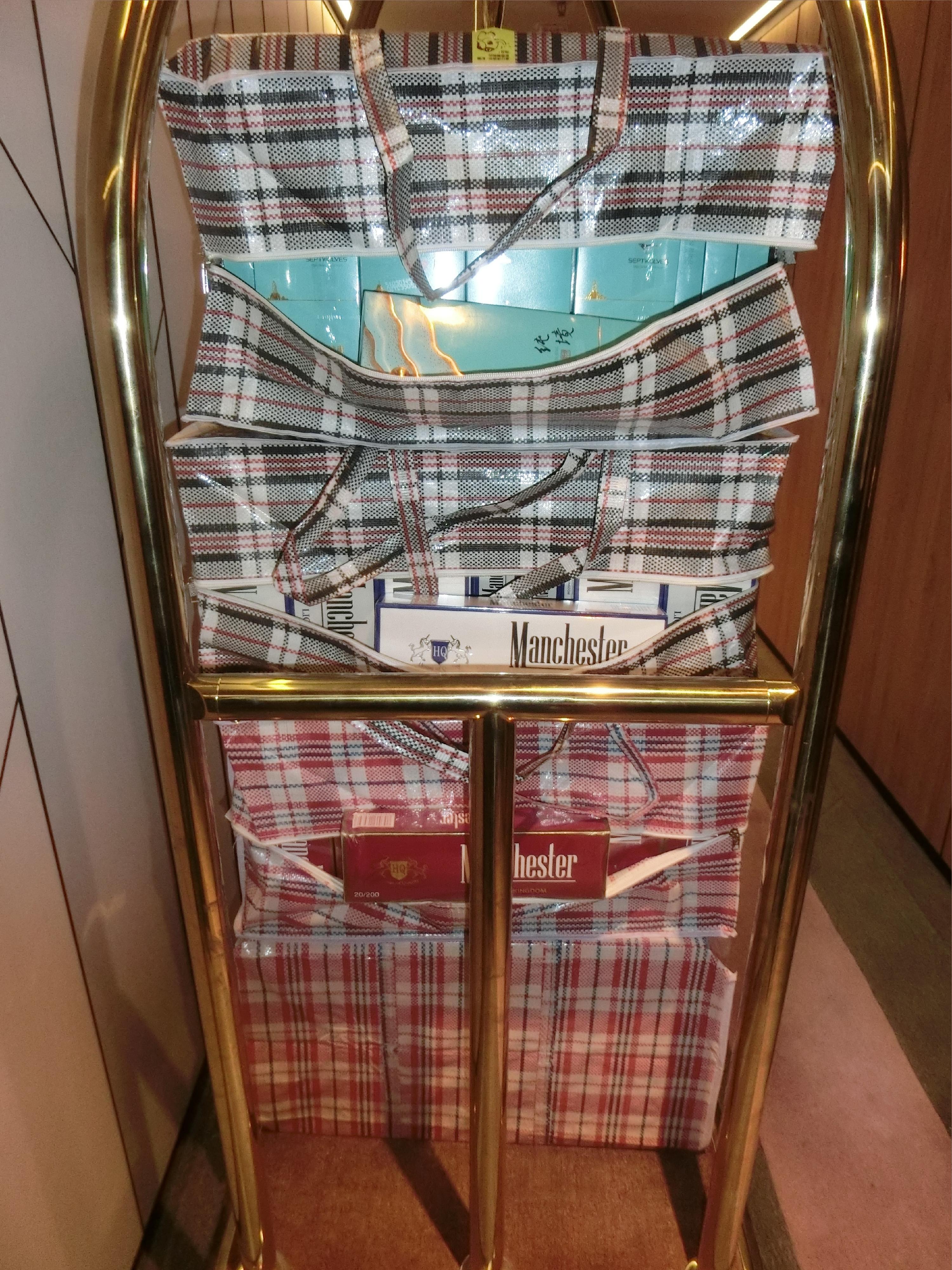 海關透過情報分析及深入調查,發現有私煙集團利用酒店房間作私煙貯存倉庫,並於昨日下午在葵涌一間酒店內截查四名可疑男子,在他們擺放於行李車上的尼龍袋中檢獲約八萬支懷疑私煙,遂把他們拘捕。其後,海關人員押解他們到酒店內一個房間搜查,再檢獲約十六萬支懷疑私煙,並於房間內拘捕另一名男子。五名被捕男子年齡介乎二十二歲至五十二歲。