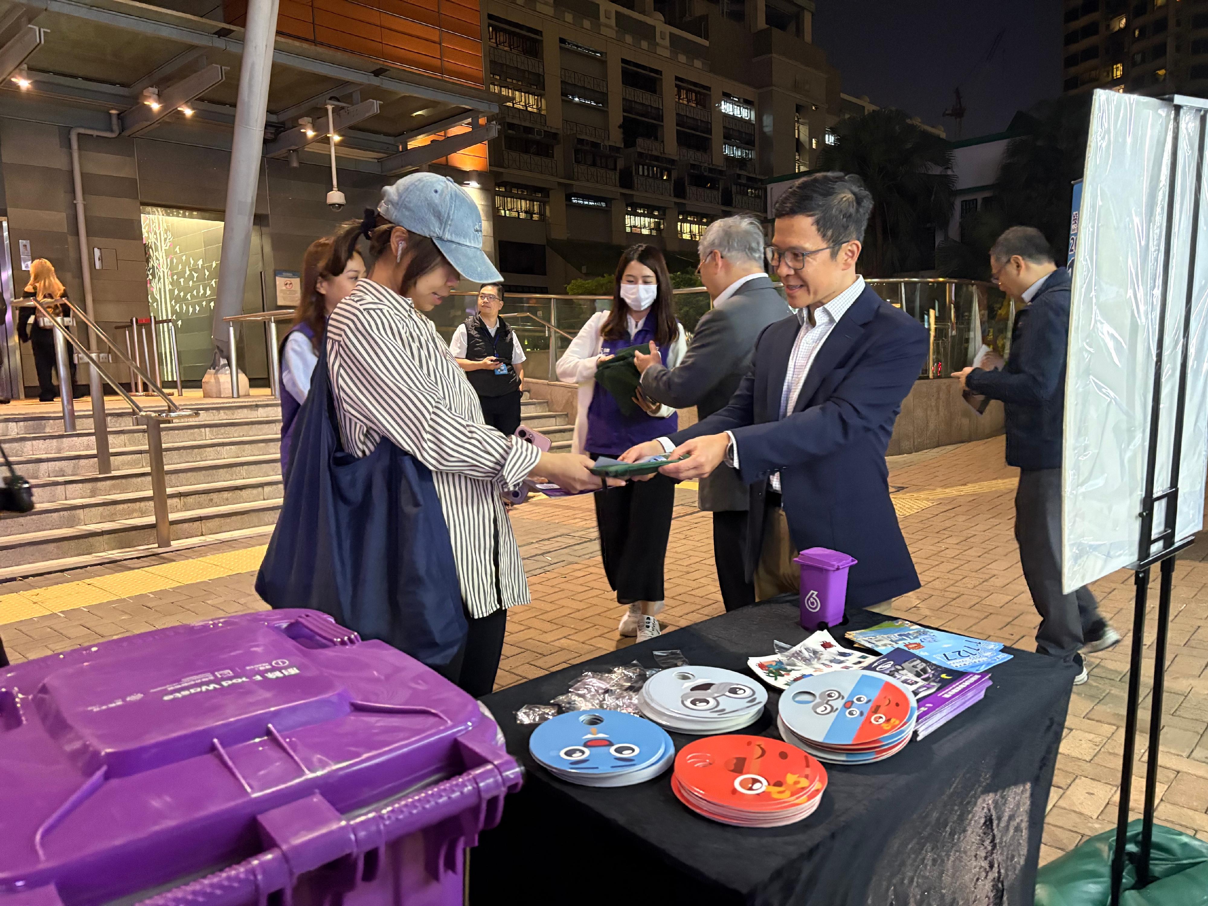 Including the Trial Scheme, the number of night-time Food Waste Recycling Spots has reached 104 (see annex). Operating at fixed times and locations during evening hours close to residential and dining areas, these recycling points facilitate nearby residents and eateries to dispose of food waste at night and develop recycling habits.