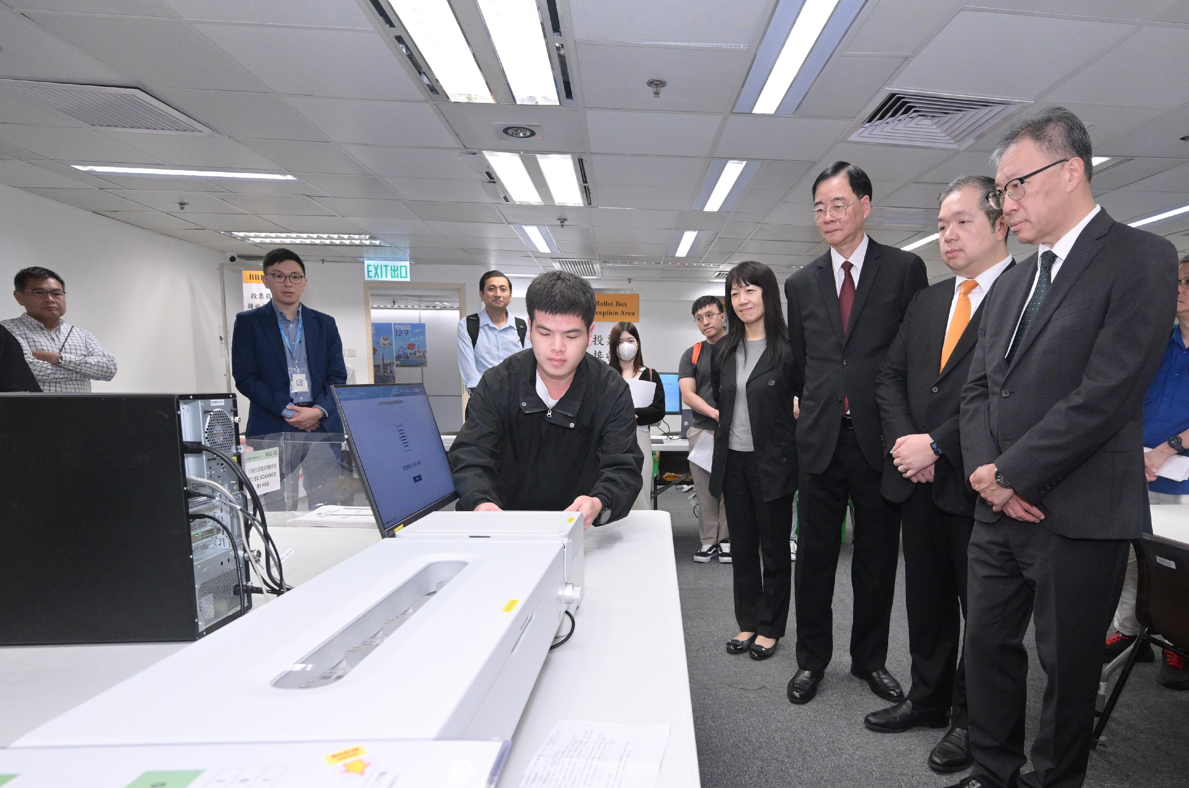 今日的培訓是為投票日在中央點票站點算功能界別選票的工作人員而設。是次立法會換屆選舉功能界別選舉將首次引入電子點票系統進行點票,在確保選舉公開、誠實和公平進行的同時,應用科技提升點票效率。選舉事務處今日為相關工作人員安排深入培訓及聯合演練,涵蓋由票箱抵達中央點票站直至點票完成的各項細節,以及後備應變方案,務求讓整個點票過程準確而高效地完成。