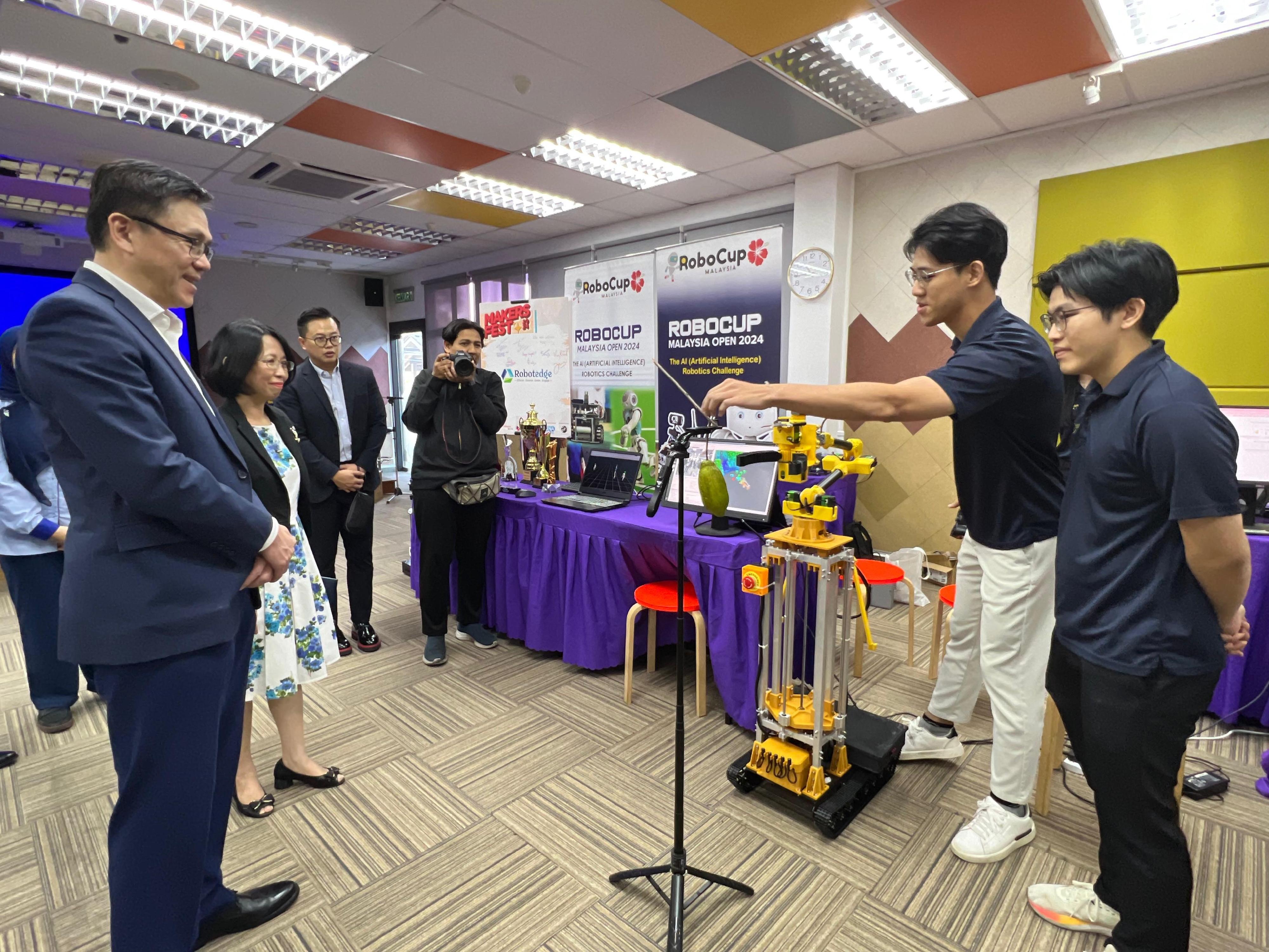 今日(一月三十日),孫東教授到訪馬來亞大學,探討透過科研、人才交流及產業方面的合作,推動香港與東盟的創新發展。孫東教授表示,香港科學園及河套香港園區可為來自馬來西亞的優秀人才及企業提供理想的拓展平台,把握粵港澳大灣區以至全球發展機遇。孫東教授參觀了該校在人工智能機器人技術及產業合作成果轉化的展示。