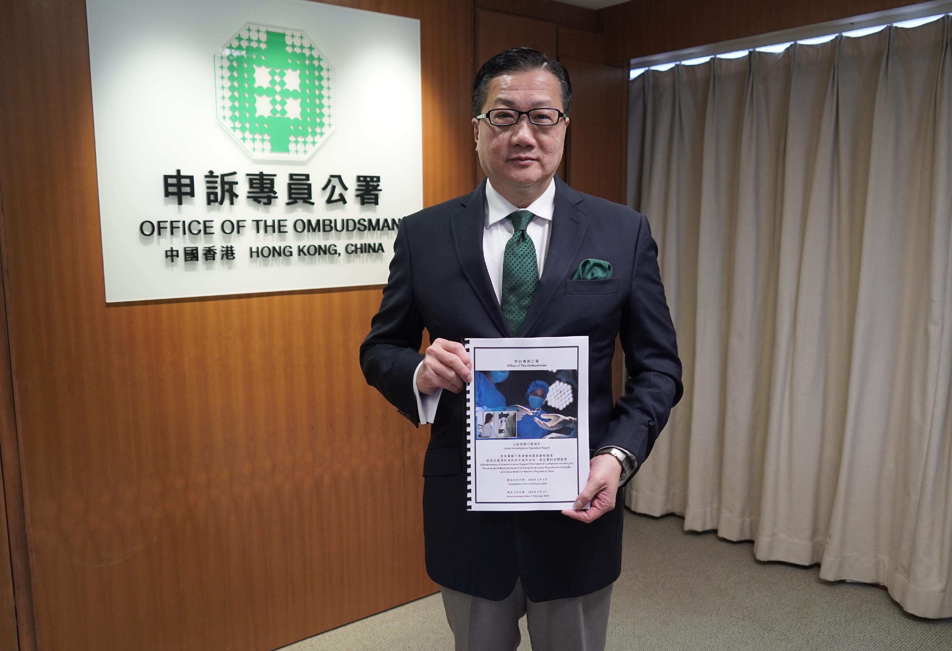 申訴專員陳積志今日(二月五日)宣布申訴專員公署(公署)完成衞生署轄下香港醫務委員會(醫委會)秘書處就處理投訴提供的支援和成效及衞生署的相關監管的主動調查行動,並向當局提出共21項改善建議。