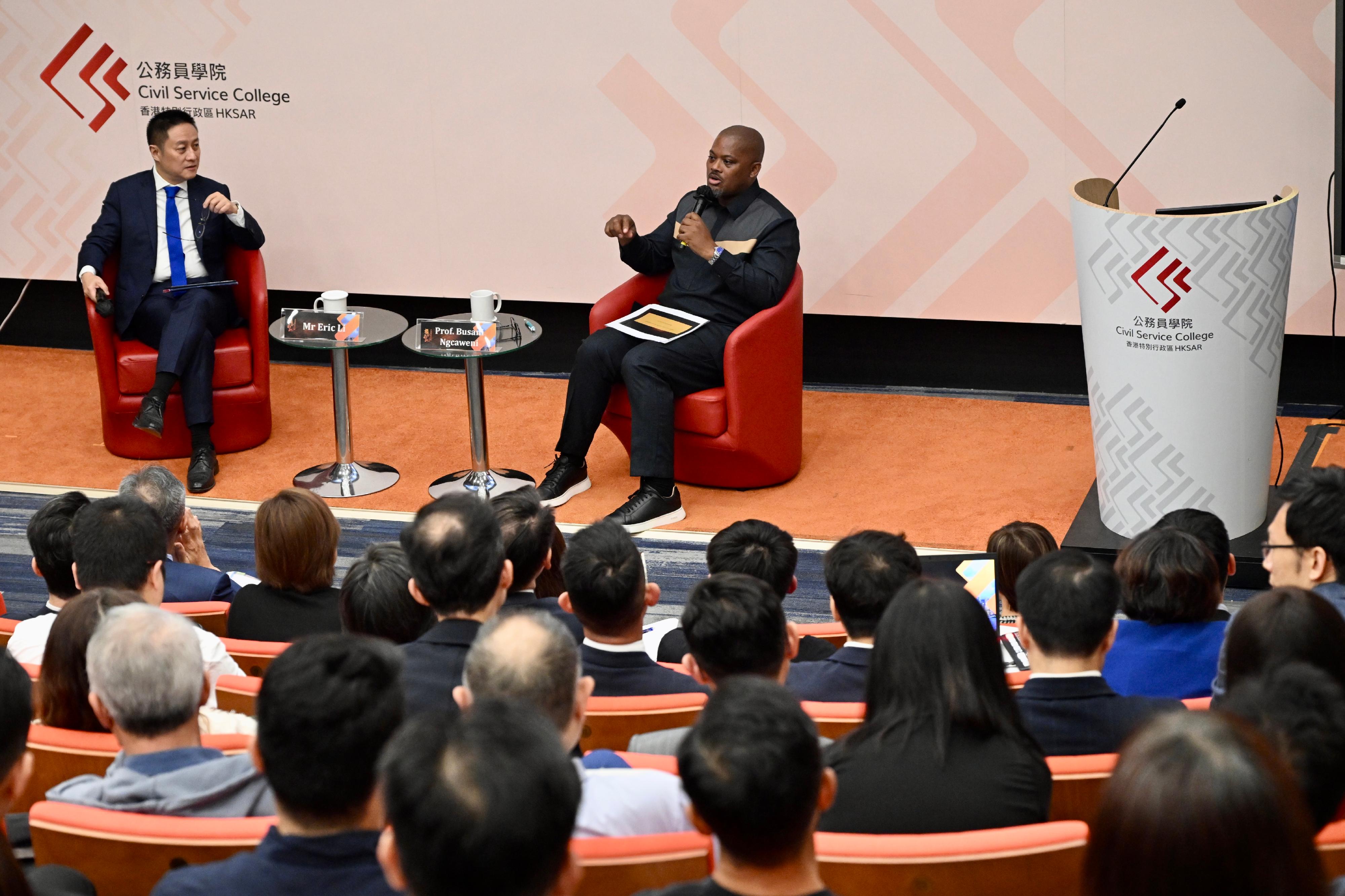 約140名分別來自49個決策局/部門的首長級和中高級公務員現場或透過網上參與今日的講座。