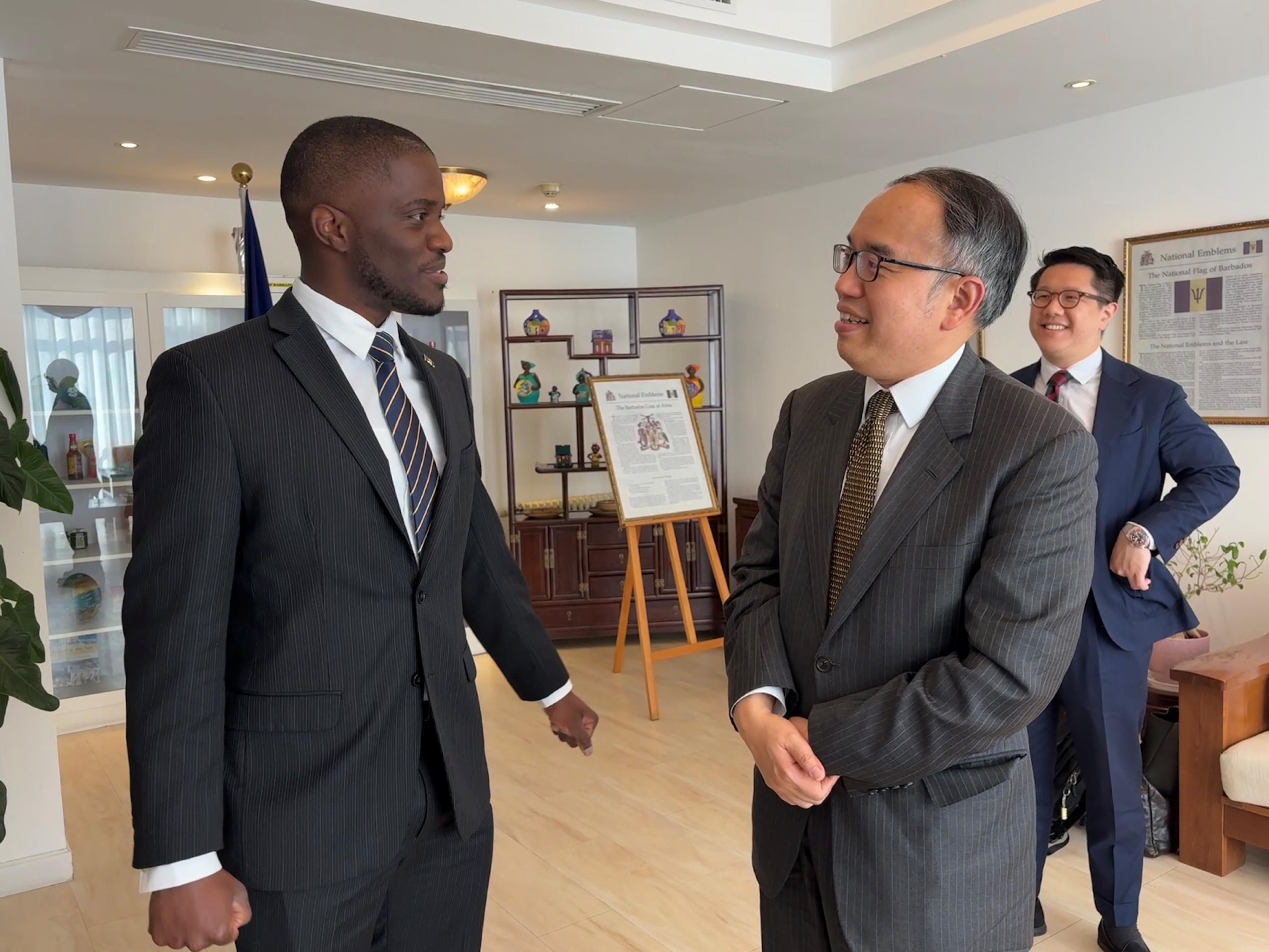 在會議上,許正宇向亨利闡述香港作為內地與國際間「超級聯繫人」和「超級增值人」的雙重「超級優勢」。他歡迎巴巴多斯企業、人才和資金落戶香港,拓展業務和借助香港這個金融穩健及具高水平專業服務的平台走進內地市場。