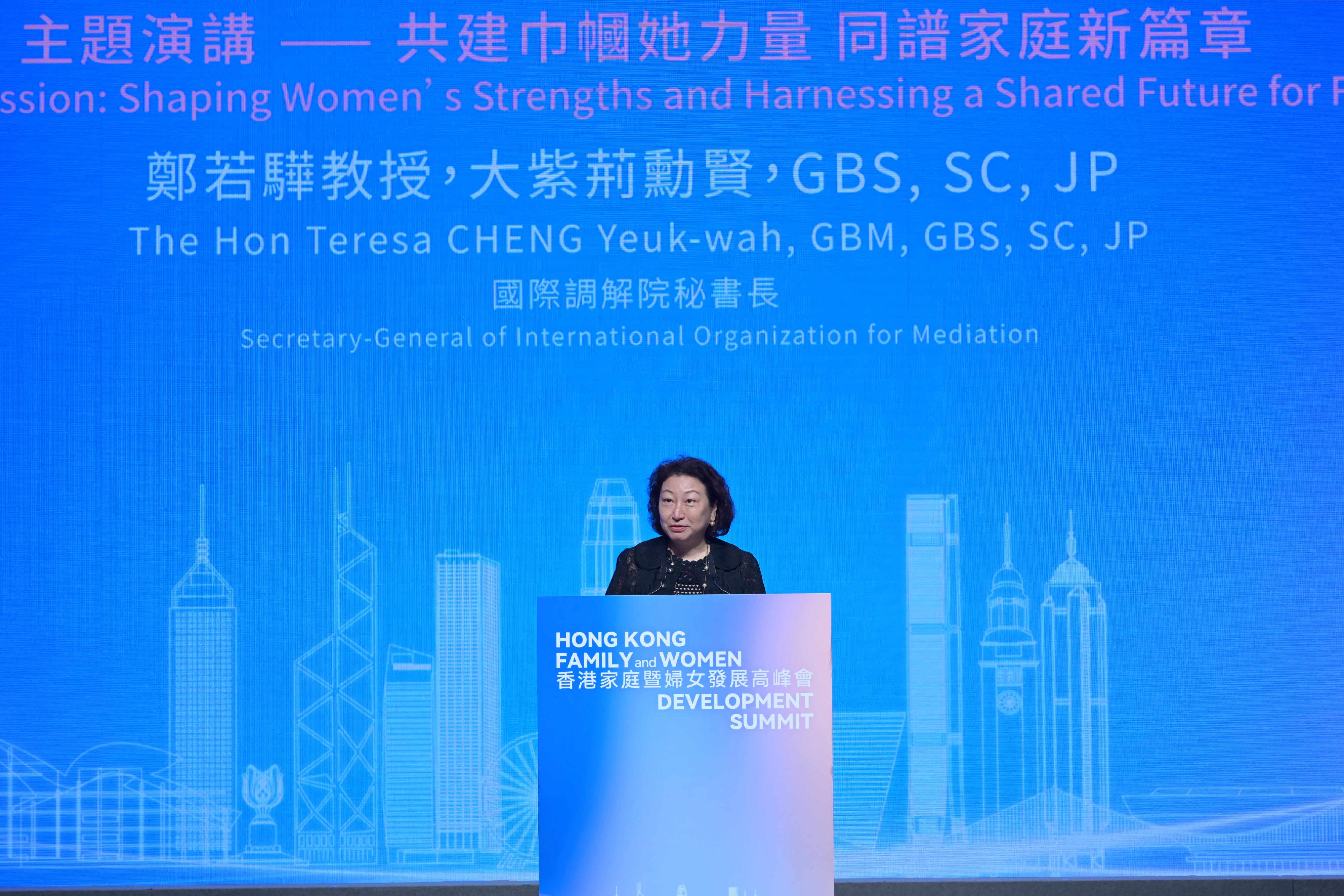 高峰會匯聚國家及香港負責家庭和婦女政策的領導、國際組織代表、相關領域的翹楚擔任演講嘉賓,其中國際調解院秘書長鄭若驊教授、聯合國婦女署中國辦公室代理代表王楚喬、民青局局長麥美娟,以及婦女事務委員會主席陳清霞博士,於主題演講就新時代婦女發展、推動婦女權益及家庭建設分享經驗及見解。